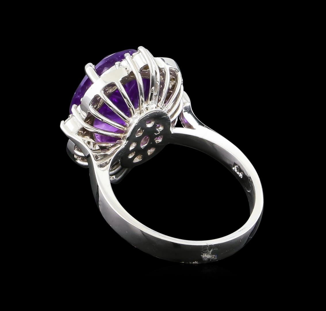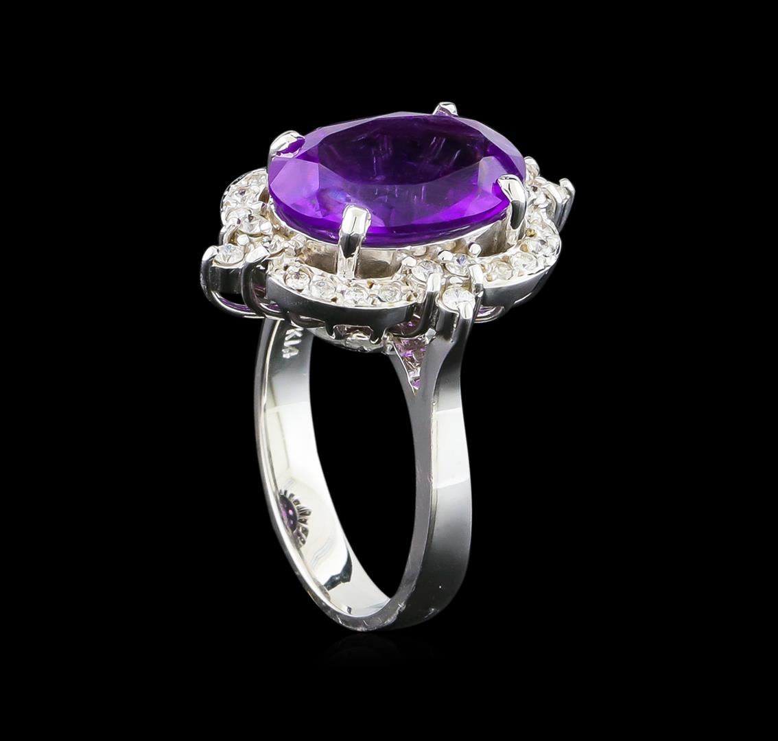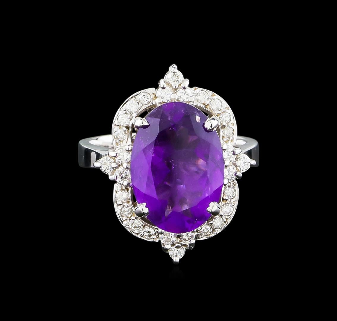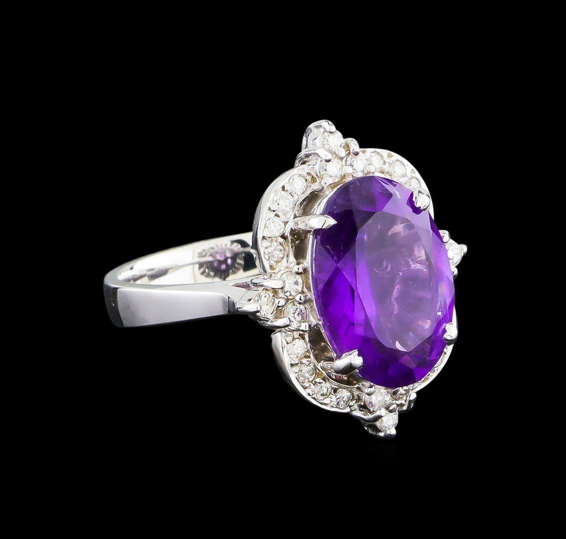 One Ring featuring: 14KT White Gold weighing 7.04 grams containing one Amethyst center stone with a total weight of 4.48ct and Diamonds with a total weight of 0.35ct.