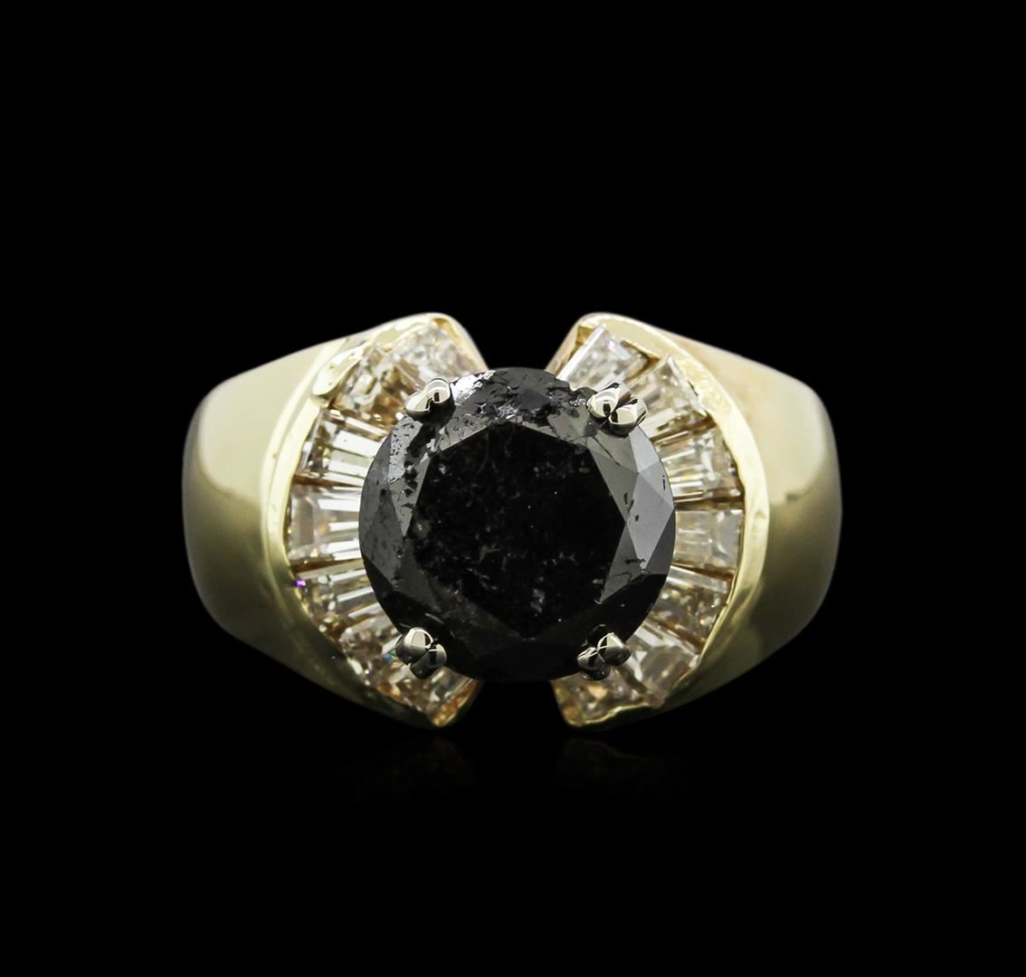 One electronically tested 14KT yellow gold lady's cast tapered ring with a half round shank with a bright polish finish. The featured lady's ring has a shank measuring 4.34 millimeters in width. Identified with markings of "14K". Condition is new, good workmanship. Containing: One prong set round brilliant cut diamond, measuring 9.42 - 9.38 x 5.73mm (depth est.) approximate weight of 2.99ct. Colored gemstones are presumed to have been subjected to commonly used enhancement processes. Graded in the setting. Cut Good Fourteen channel set baguette cut diamonds, measuring from 3.50 x 1.80 x 1.53mm (depth est.) to 3.75 x 2.30 x 1.96mm (depth est.) approximate total weight of 14 Stones = 1.50ct. Graded in the setting. Clarity: VS-1 to VS-2. Color: H - J. Cut Good. Total Weight of Diamonds 4.49ct. Total Weight of Ring 9.50gm. GAS Appraised at $6,180.00.