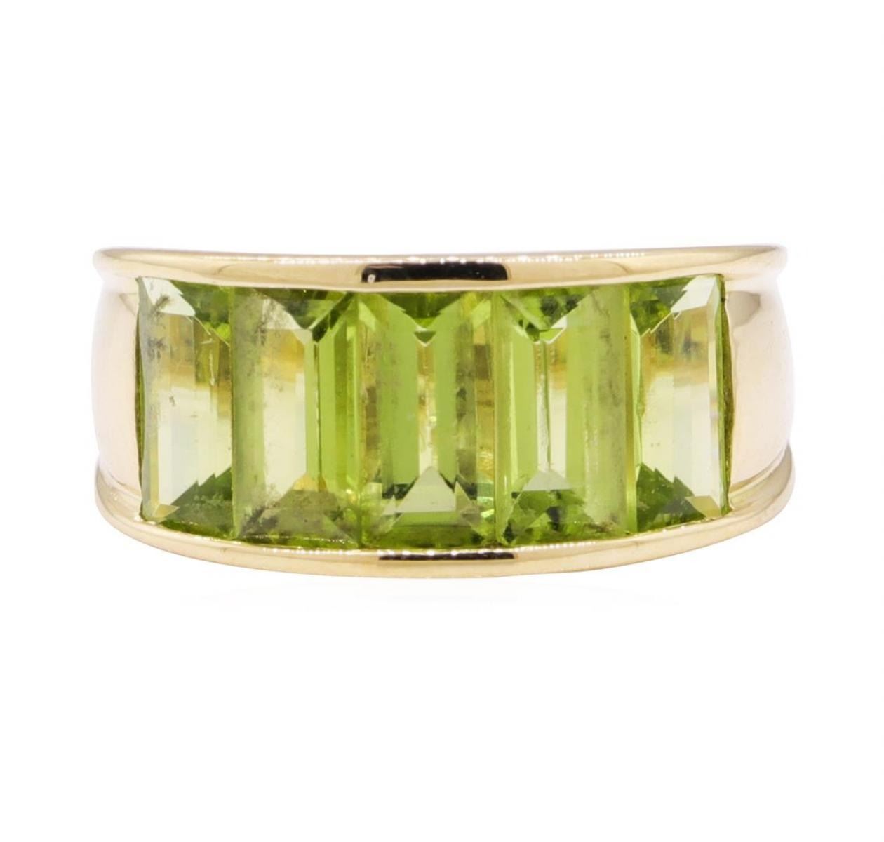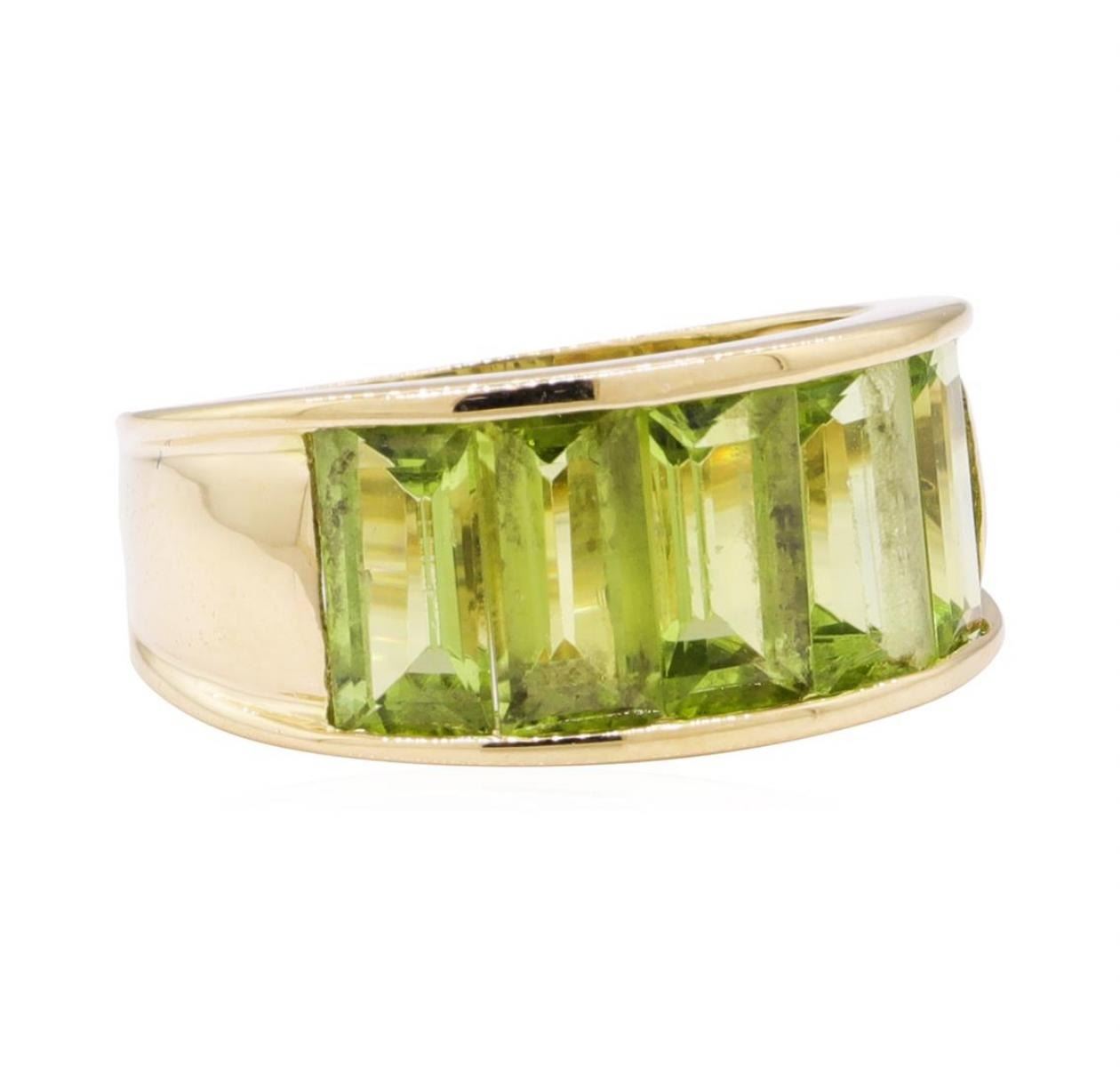 One 4.50ctw Peridot Ring - 14KT Yellow Gold.