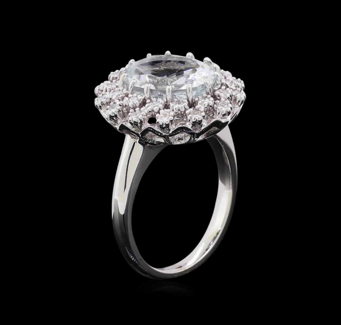 One ring featuring: 14KT white gold weighing 7.37 grams containing one aquamarine weighing 4.55ct and diamonds weighing 0.45ctw.