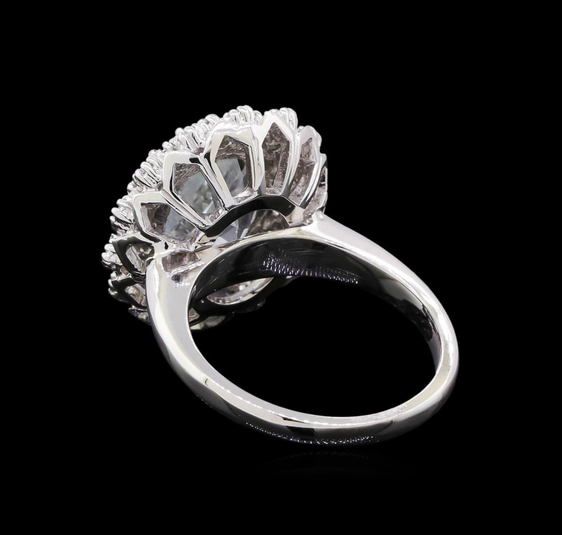 One ring featuring: 14KT white gold weighing 7.37 grams containing one aquamarine weighing 4.55ct and diamonds weighing 0.45ctw.