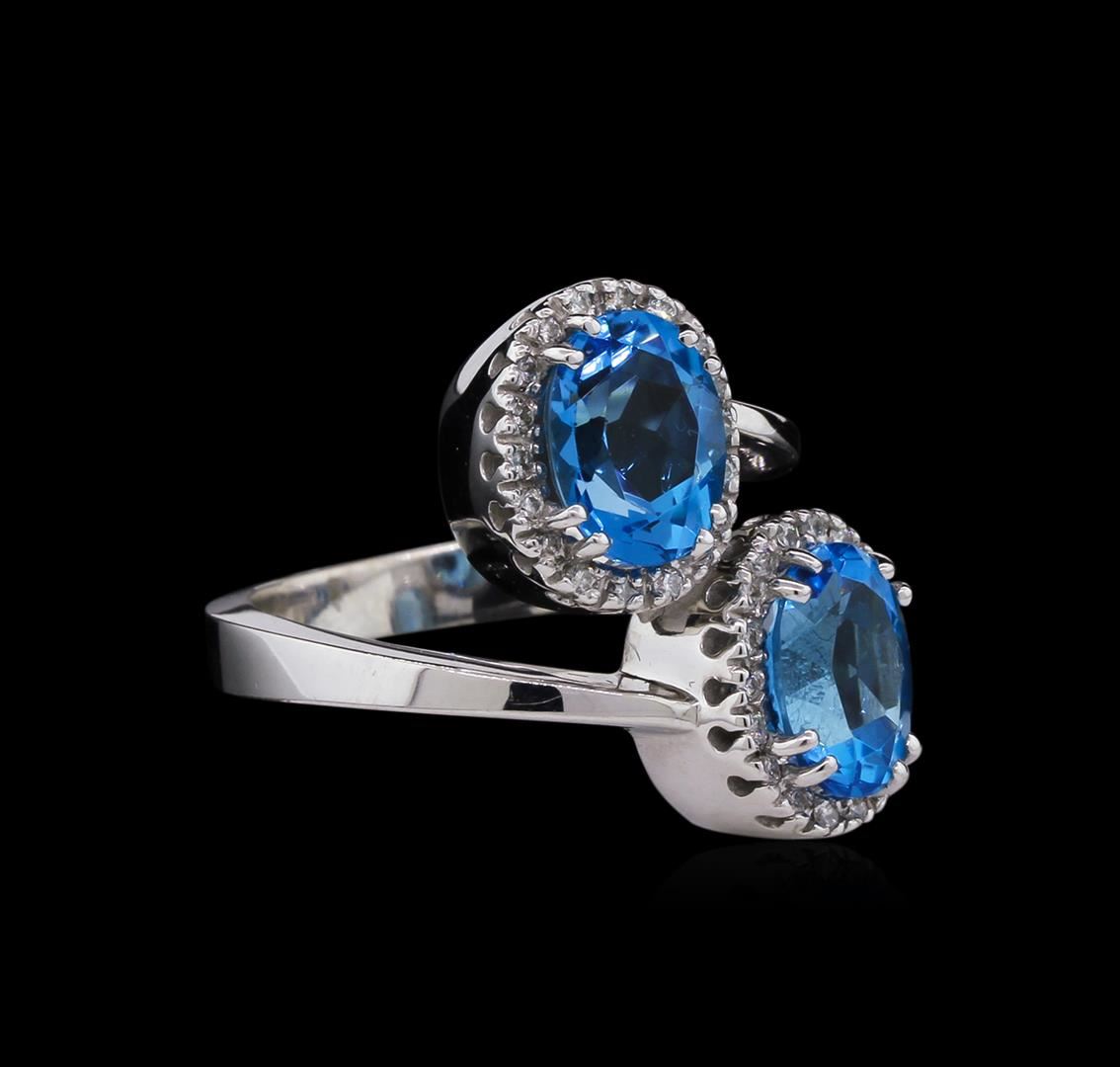 One ring featuring: 14KT white gold weighing 10.80 grams containing two blue topaz with a total weight of 4.56ct and diamonds with a total weight of 0.18ct.