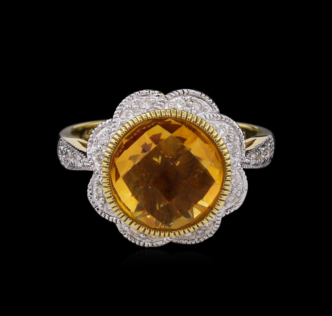 One ring featuring: 14KT yellow gold weighing 4.50 grams containing one citrine center stone with a total weight of 4.56ct and diamonds with a total weight of 0.15ct.