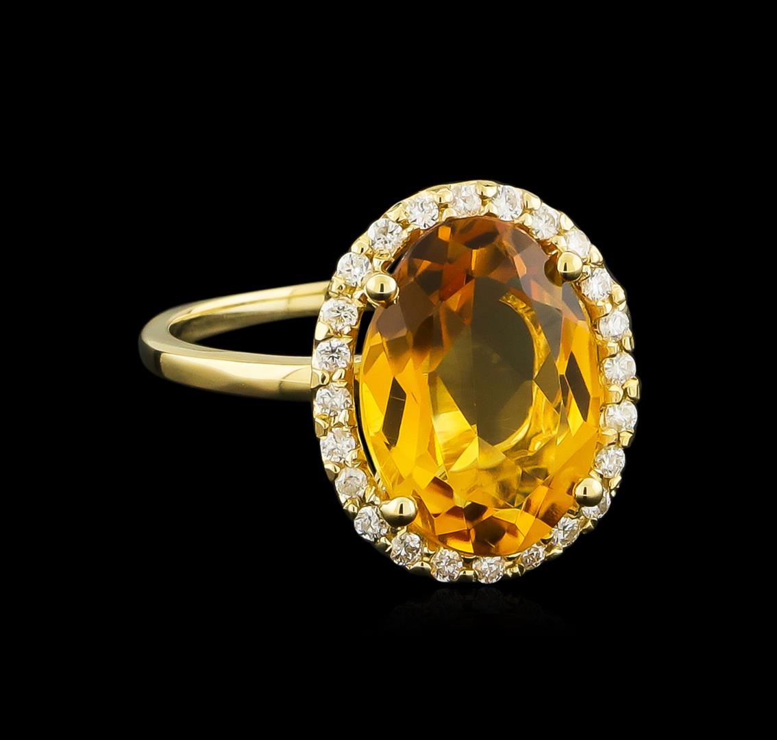 One Ring featuring: 14KT Yellow Gold weighing 3.2 grams containing one Citrine center stone with a total weight of 4.57ct and Diamonds with a total weight of 0.24ct.
