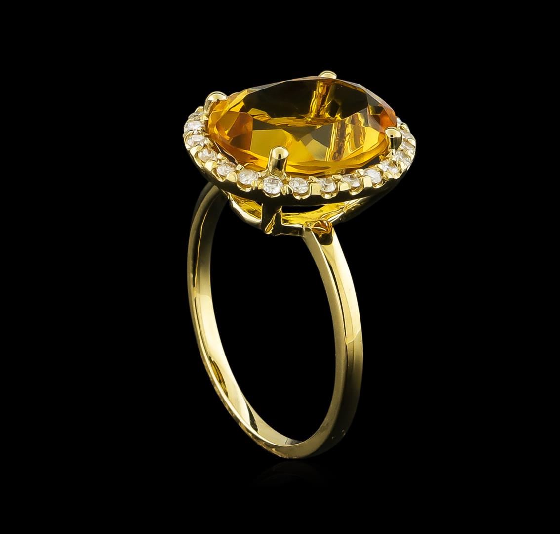 One Ring featuring: 14KT Yellow Gold weighing 3.2 grams containing one Citrine center stone with a total weight of 4.57ct and Diamonds with a total weight of 0.24ct.