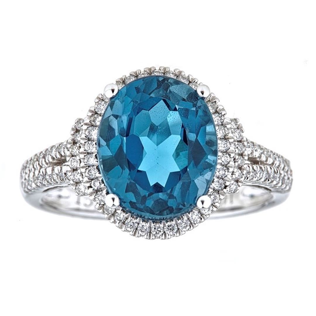 One Ring : 14KT white gold weighing 3.29gm containing one London blue topaz center stone with a total weight of 4.58ct and side diamonds weighing 0.30ctw.