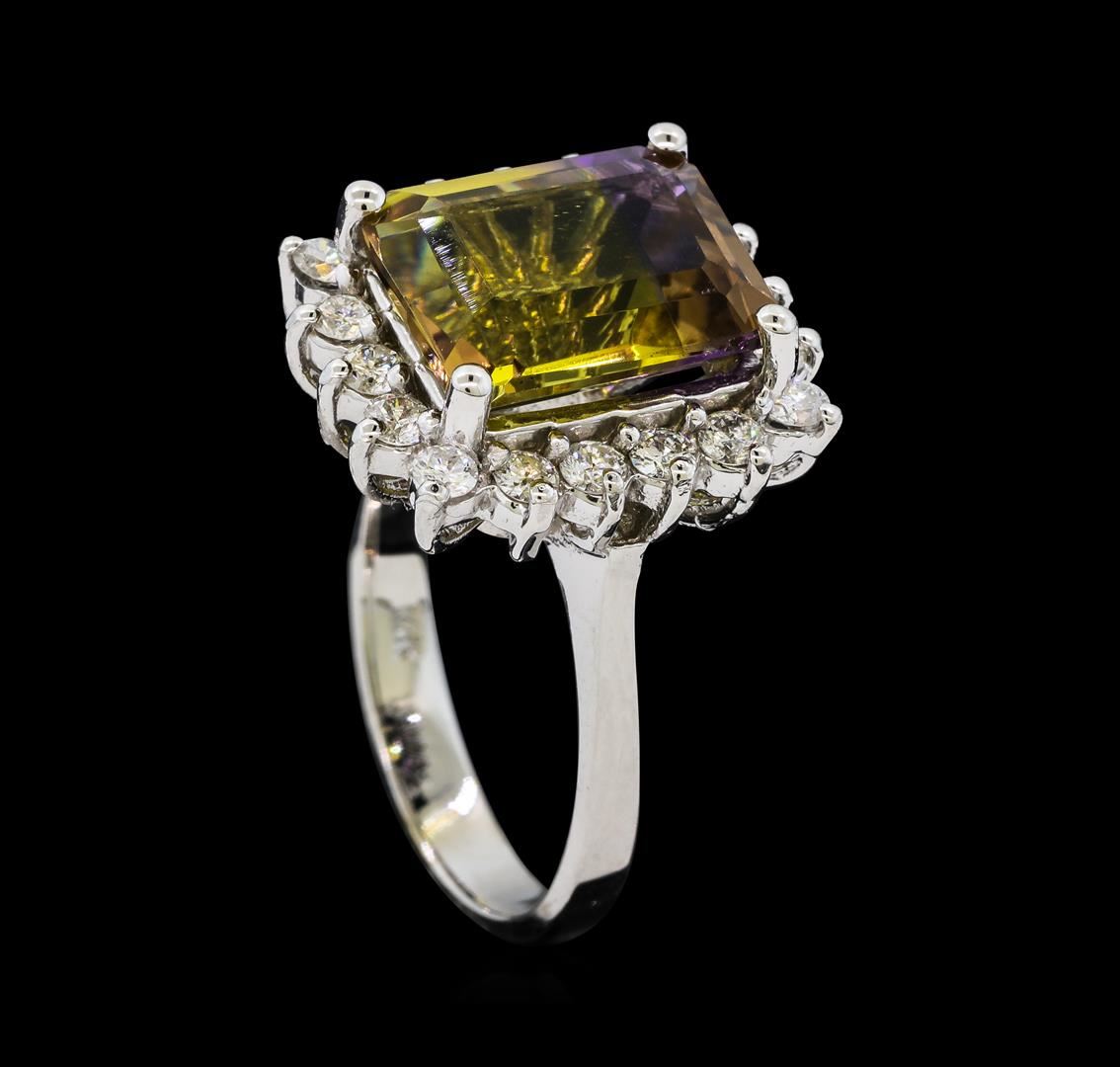 One Ametrine Quartz and Diamond Ring including: 14KT White Gold weighing a total of 5.50 grams, Ametrine Quartz weighing a total of 4.62ct and 18 Diamonds weighing a total of 0.65ctw.