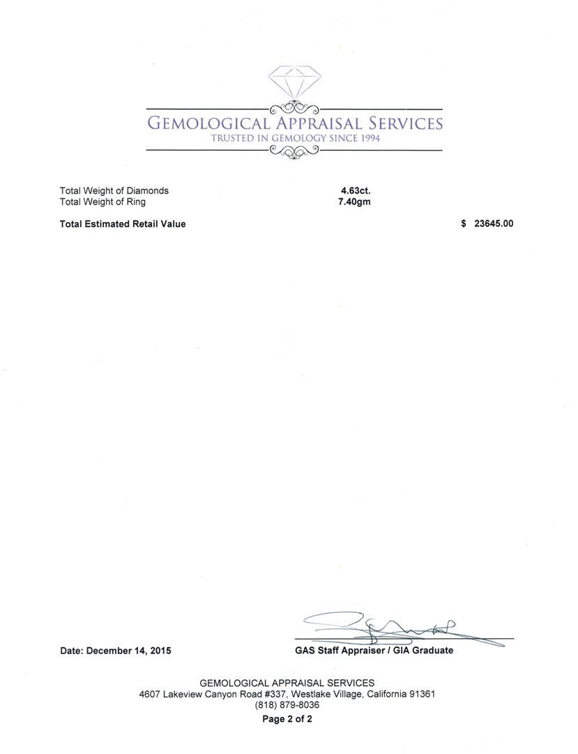 Not all Jewelry, watches or loose stones are appraised and the appraisals are provided for bidders only in certain instances at the discretion of SAA. Our appraisals are conducted by independent third-party appraisal firms. Such firms may be certified GIA Gemologists or have education in the industry or alternative certifications. Appraisals should be used for verification of gemstone and/or metal weight, size, and grade only, not actual value for resale or insurance purposes. Appraisal value should be not considered for actual value, as price varies greatly from retail locations and other merchants in different geographic locations. All Items auctioned by SAA should not be purchased with a view or expectation toward resale for appraisal price given, or to make a profit. The ultimate value for which an item can be resold may vary drastically from the appraisals listed by SAA.