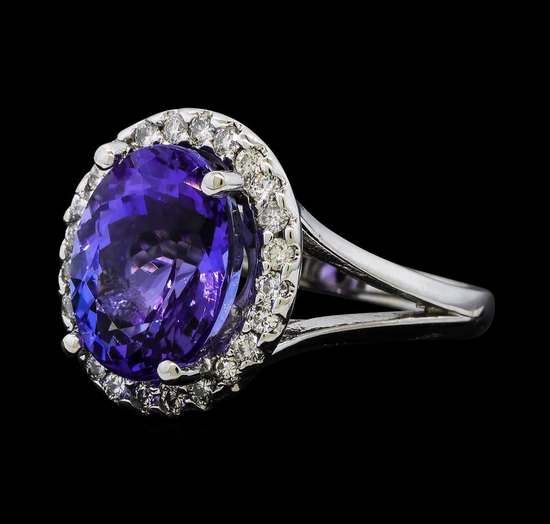 One Tanzanite and Diamond Ring including: 14KT White Gold weighing a total of 4.23 grams, Tanzanite weighing a total of 4.65ct, and 24 Diamonds weighing a total of 0.33ctw.