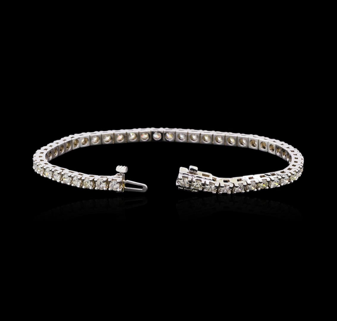One electronically tested 14KT white gold lady's combination cast & assembled fashion tennis bracelet with a tongue clasp with foldover safety with a bright polish finish. The featured lady's bracelet measures 7 inches in length. Identified with markings of "14K". Condition is new, good workmanship. Containing: Fifty prong set round brilliant cut diamonds, measuring 2.95 - 2.86 x 1.81mm (depth est.) approximate total weight of 50 Stones = 4.66ct. Graded in the setting. Clarity: VS-2 to SI-2. Color: H - Very Good. Total Weight of Diamonds 4.66ct. Total Weight of Tennis Bracelet 13.10gm. GAS Appraised at $13,970.00.
