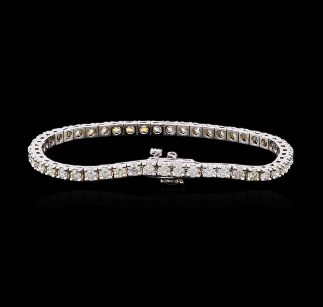 One electronically tested 14KT white gold lady's combination cast & assembled fashion tennis bracelet with a tongue clasp with foldover safety with a bright polish finish. The featured lady's bracelet measures 7 inches in length. Identified with markings of "14K". Condition is new, good workmanship. Containing: Fifty prong set round brilliant cut diamonds, measuring 2.95 - 2.86 x 1.81mm (depth est.) approximate total weight of 50 Stones = 4.66ct. Graded in the setting. Clarity: VS-2 to SI-2. Color: H - Very Good. Total Weight of Diamonds 4.66ct. Total Weight of Tennis Bracelet 13.10gm. GAS Appraised at $13,970.00.
