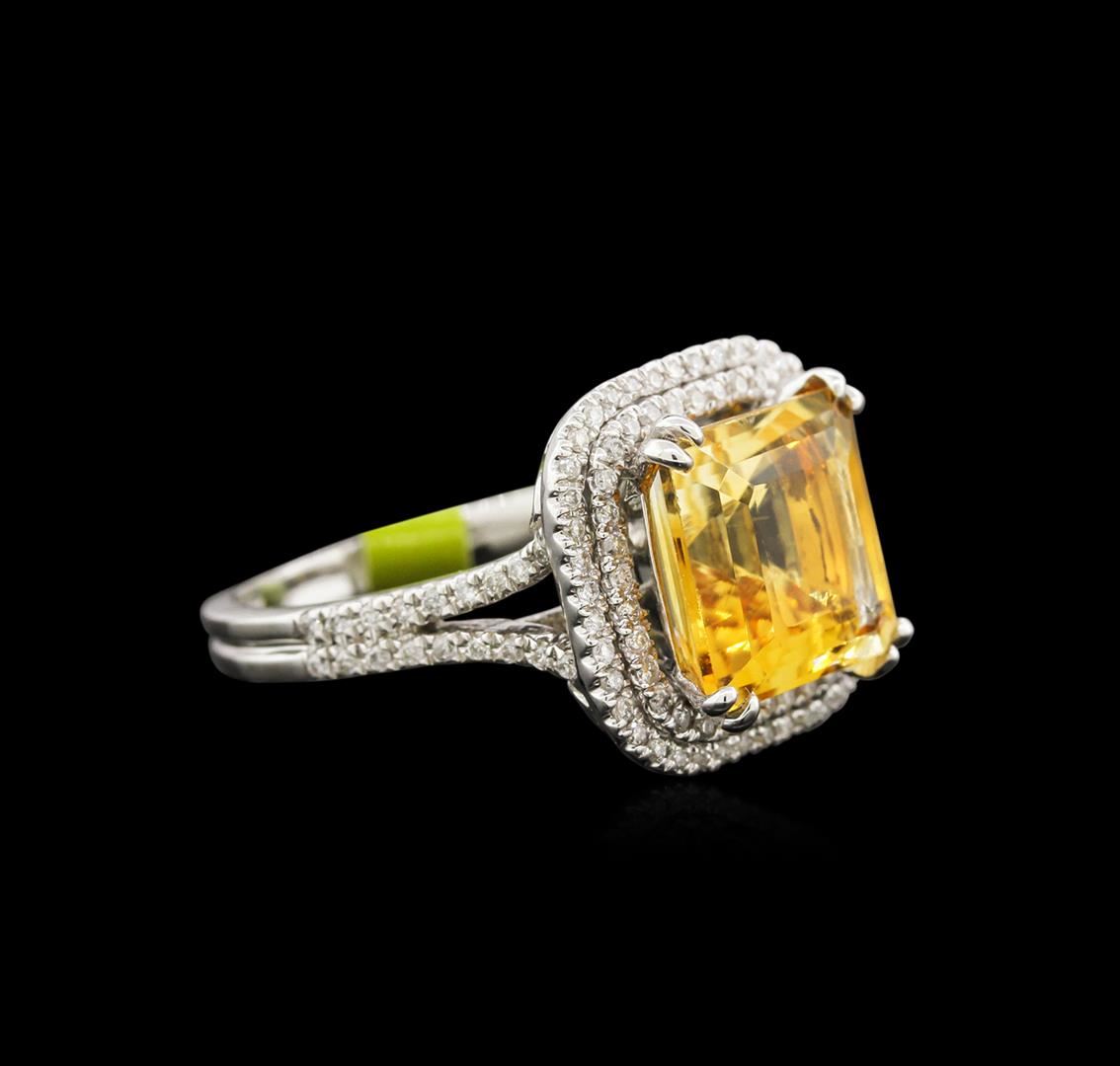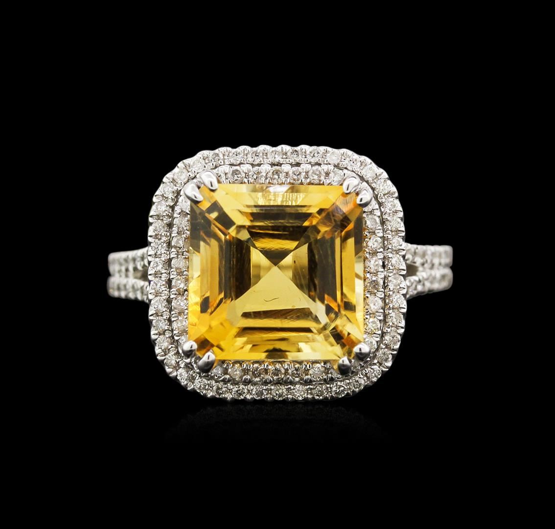 One ring featuring: 14KT white gold weighing 6.30 grams containing one citrine center stone with a total weight of 4.67ct and diamonds with a total weight of 0.52ct.