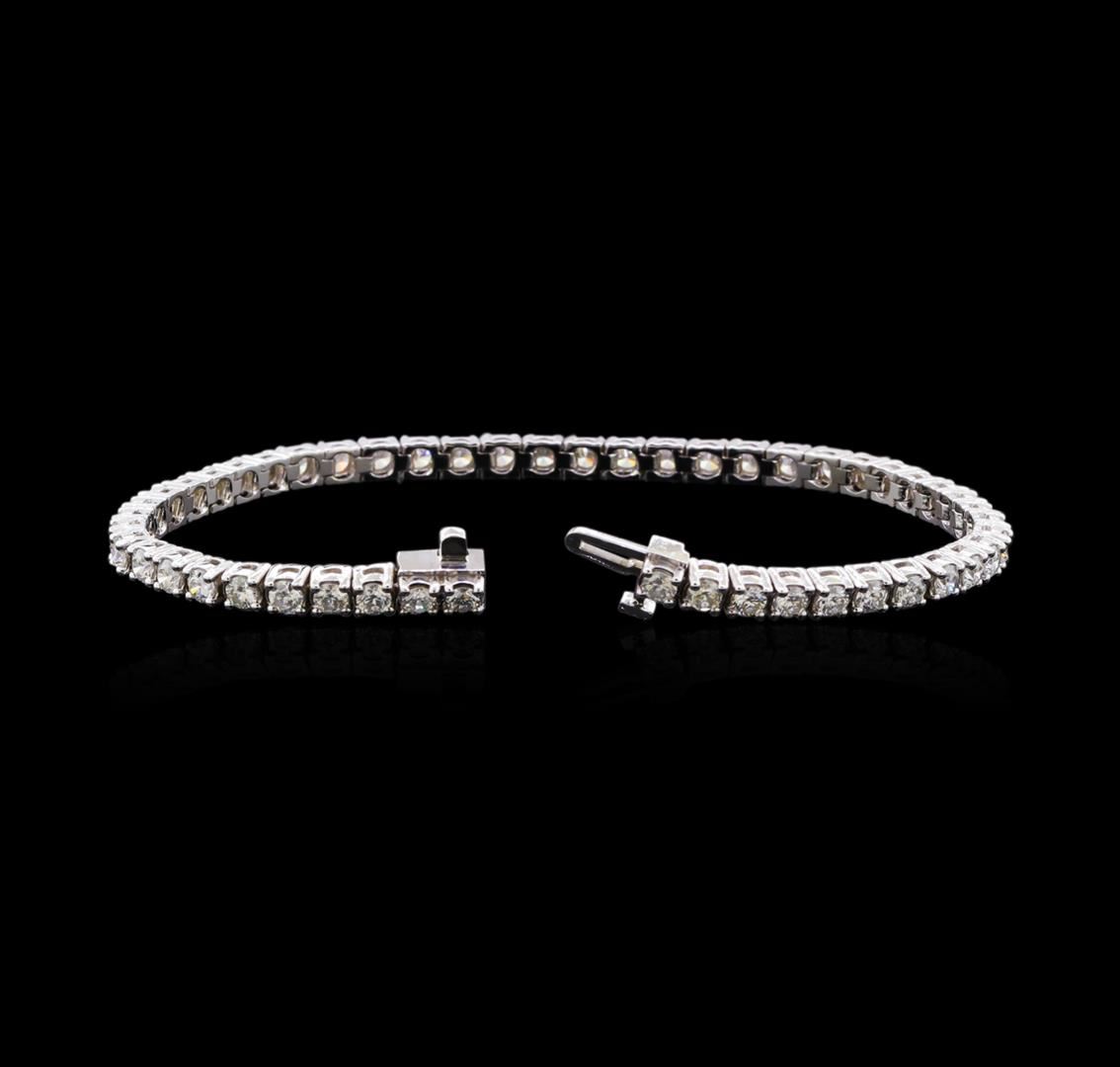 One electronically tested 14KT white gold lady's combination cast & assembled fashion tennis bracelet with a tongue clasp with foldover safety with a bright polish finish. The featured lady's bracelet measures 7 inches in length. Identified with markings of "14K". Condition is new, good workmanship. Containing: Fifty prong set round brilliant cut diamonds, measuring 2.95 - 2.87 x 1.81mm (depth est.) approximate total weight of 50 Stones = 4.68ct. Graded in the setting. Clarity: VS-2 to SI-2. Color: H - Very Good. Total Weight of Diamonds 4.68ct. Total Weight of Tennis Bracelet 13.20gm. GAS Appraised at $14,035.00.