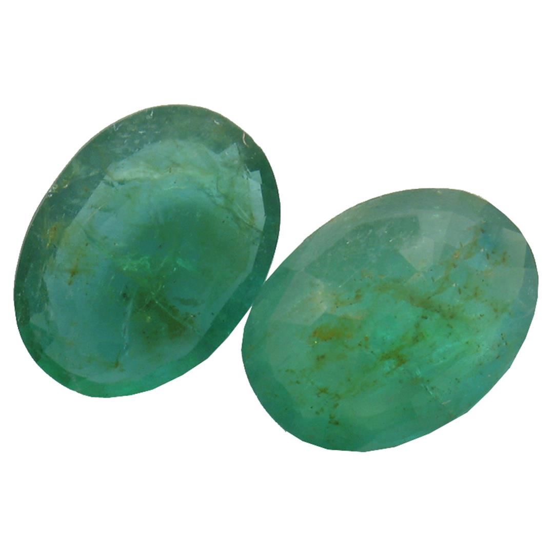 Two oval mixed cut natural emeralds, measuring 11.77 x 8.94 x 3.70mm, approximate total weight of 4.70ct., clarity is heavily included, type III, medium dark, very slightly grayish, very slightly bluish green color, (GIA vslbG 6/3), cut is good. Indications of multiple laboratory enhancements, including high temperature heat treatment. Westfield Appraised at $2,155.00.