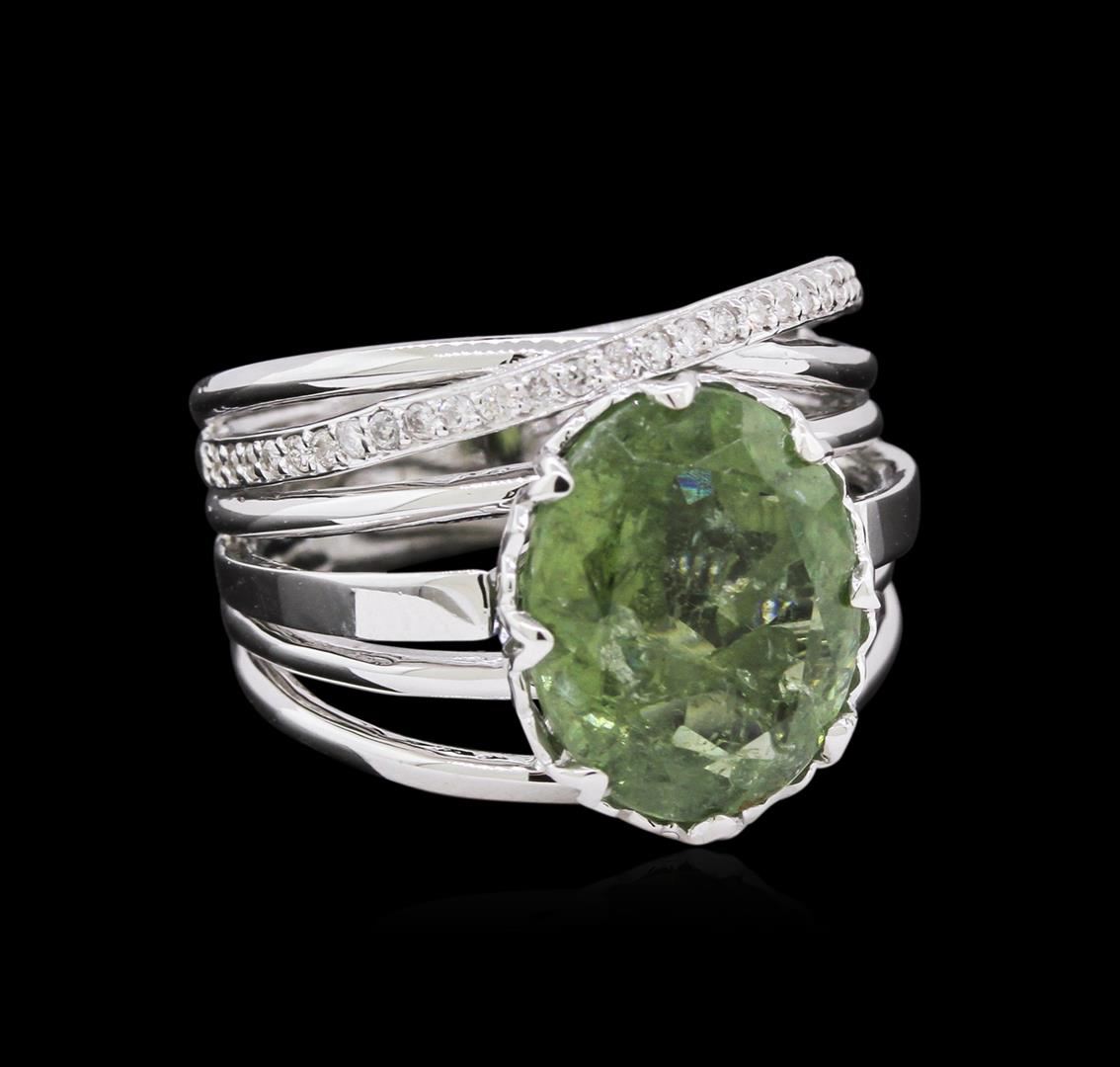 One ring featuring: 14KT white gold weighing 6.53 grams containing one green tourmaline with a total weight of 4.70ct and diamonds with a total weight of 0.15.
