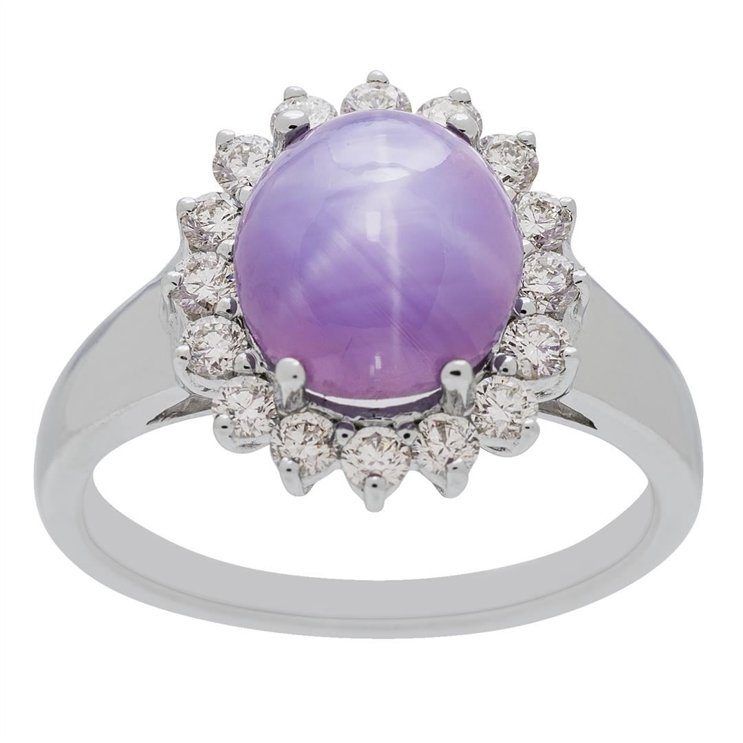 One lady's ring featuring: 18KT white gold weighing 3.48 grams containing one star ruby weighing 4.71ct and diamonds weighing 0.55ctw.