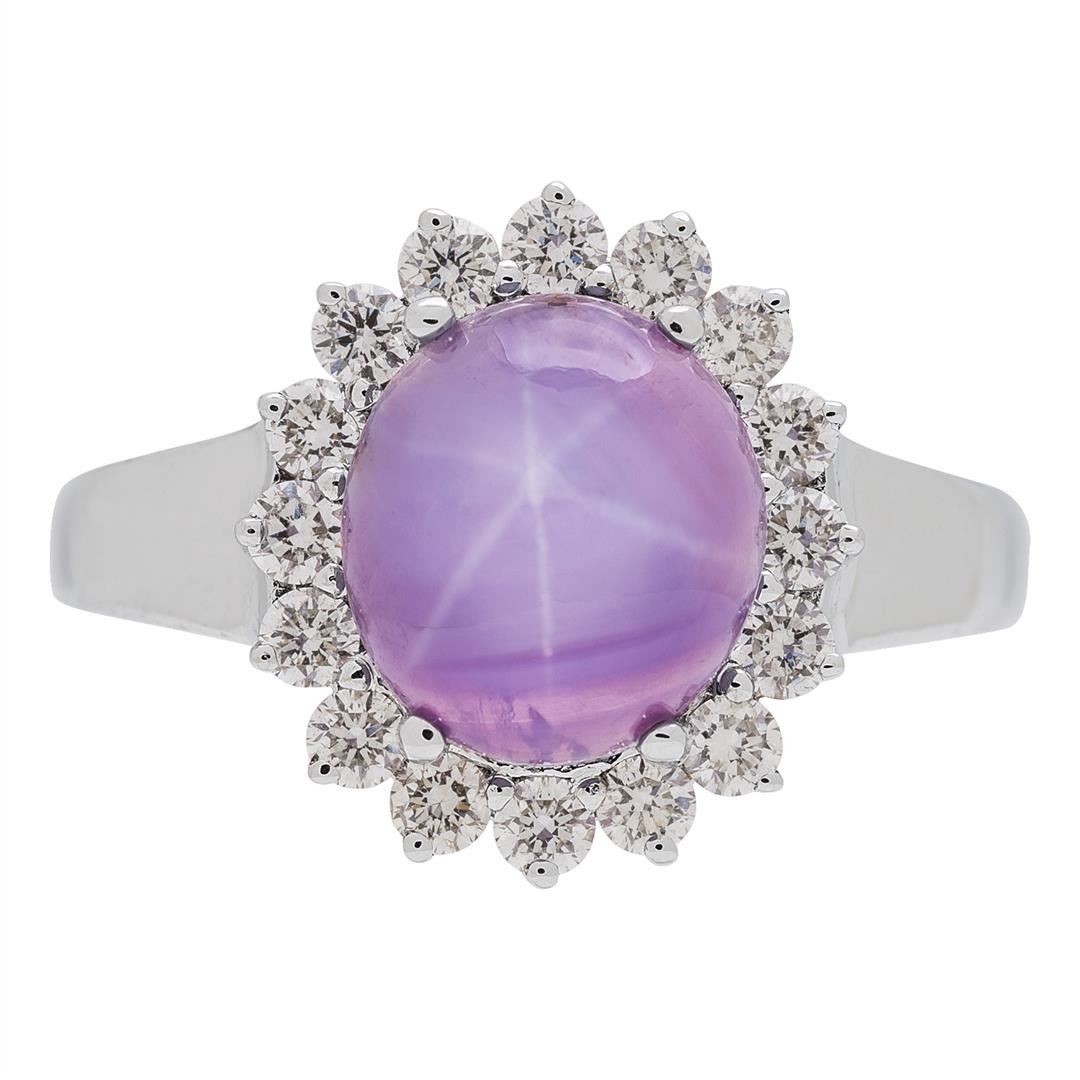 One lady's ring featuring: 18KT white gold weighing 3.48 grams containing one star ruby weighing 4.71ct and diamonds weighing 0.55ctw.