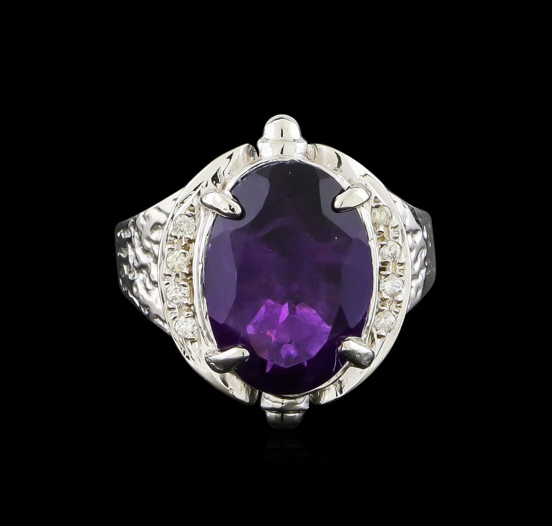 One Ring featuring: 14KT White Gold weighing 6.65 grams containing one Amethyst center stone with a total weight of 4.72ct and Diamonds with a total weight of 0.08ct.