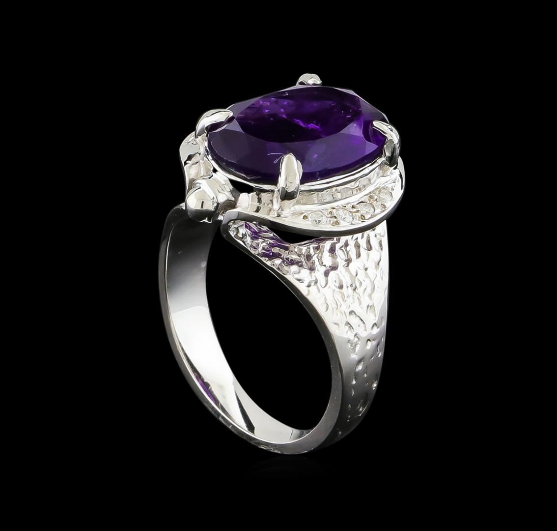 One Ring featuring: 14KT White Gold weighing 6.65 grams containing one Amethyst center stone with a total weight of 4.72ct and Diamonds with a total weight of 0.08ct.