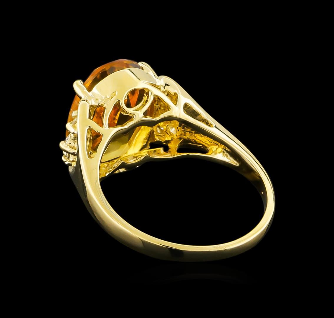 One Ring featuring: 14KT Yellow Gold weighing 4.16 grams containing one Citrine center stone with a total weight of 4.72ct and Diamonds with a total weight of 0.15ct.