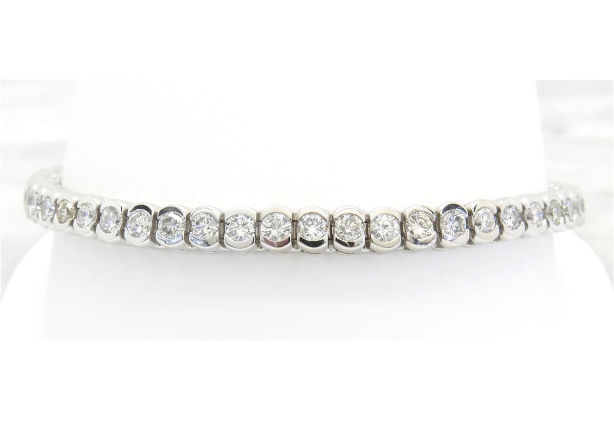 One tested 14K white gold diamond bracelet. Containing: 51 Round Brilliant Cut Diamonds. Clarity: I, Color: G-J. Approximate total diamond weight: 4.75CTW. All diamonds are graded in the mounting unless otherwise stated. Weight of bracelet: 20.9 grams, Size: 7" Long.