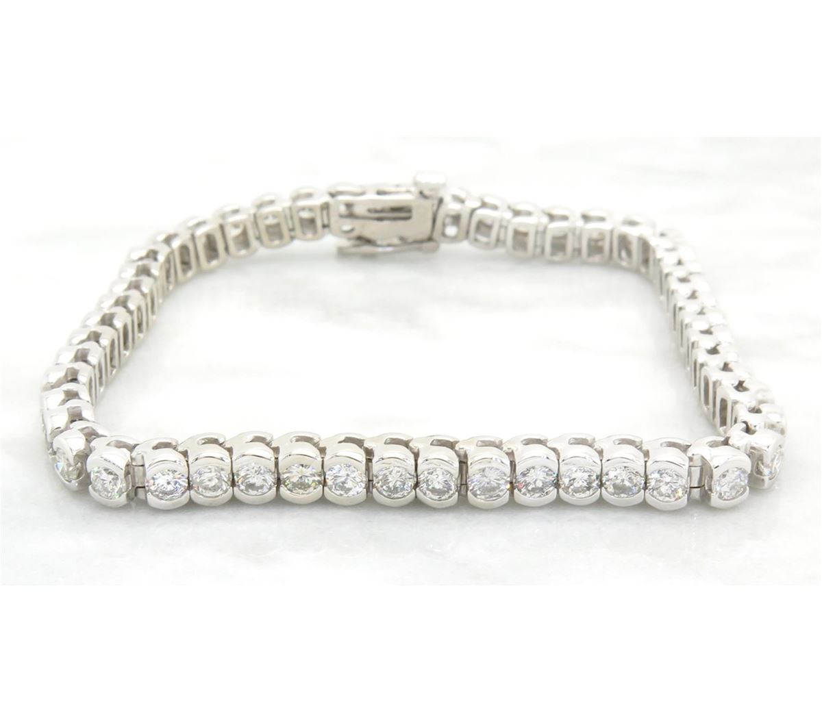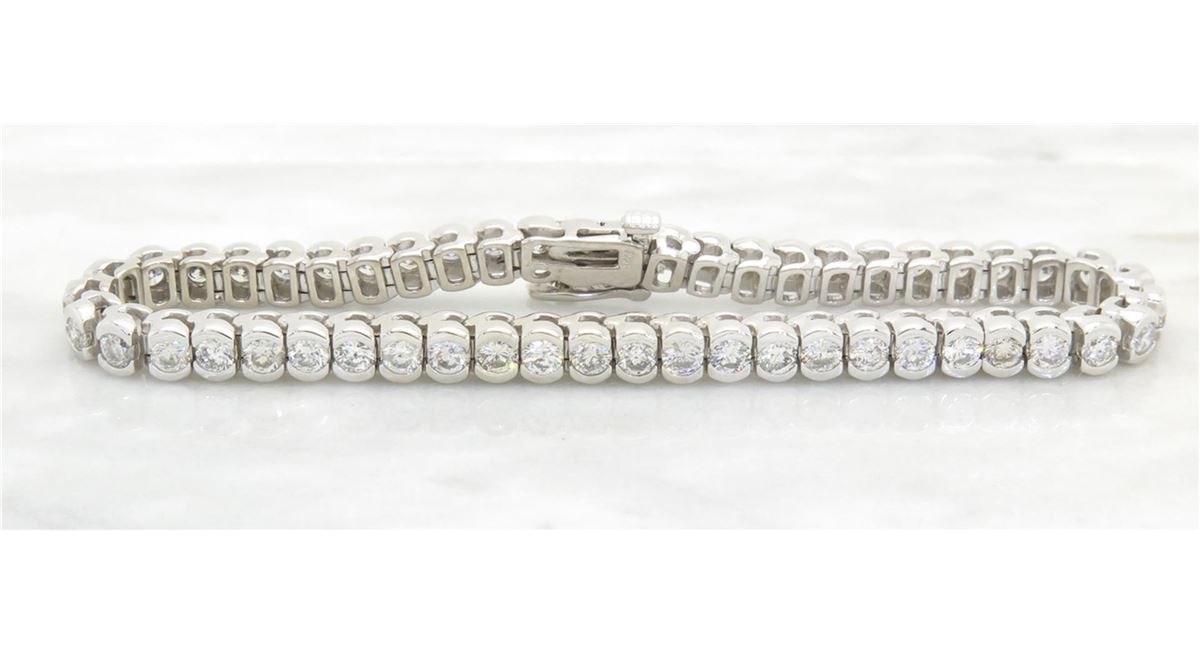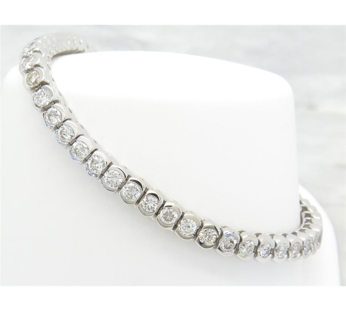 One tested 14K white gold diamond bracelet. Containing: 51 Round Brilliant Cut Diamonds. Clarity: I, Color: G-J. Approximate total diamond weight: 4.75CTW. All diamonds are graded in the mounting unless otherwise stated. Weight of bracelet: 20.9 grams, Size: 7" Long.