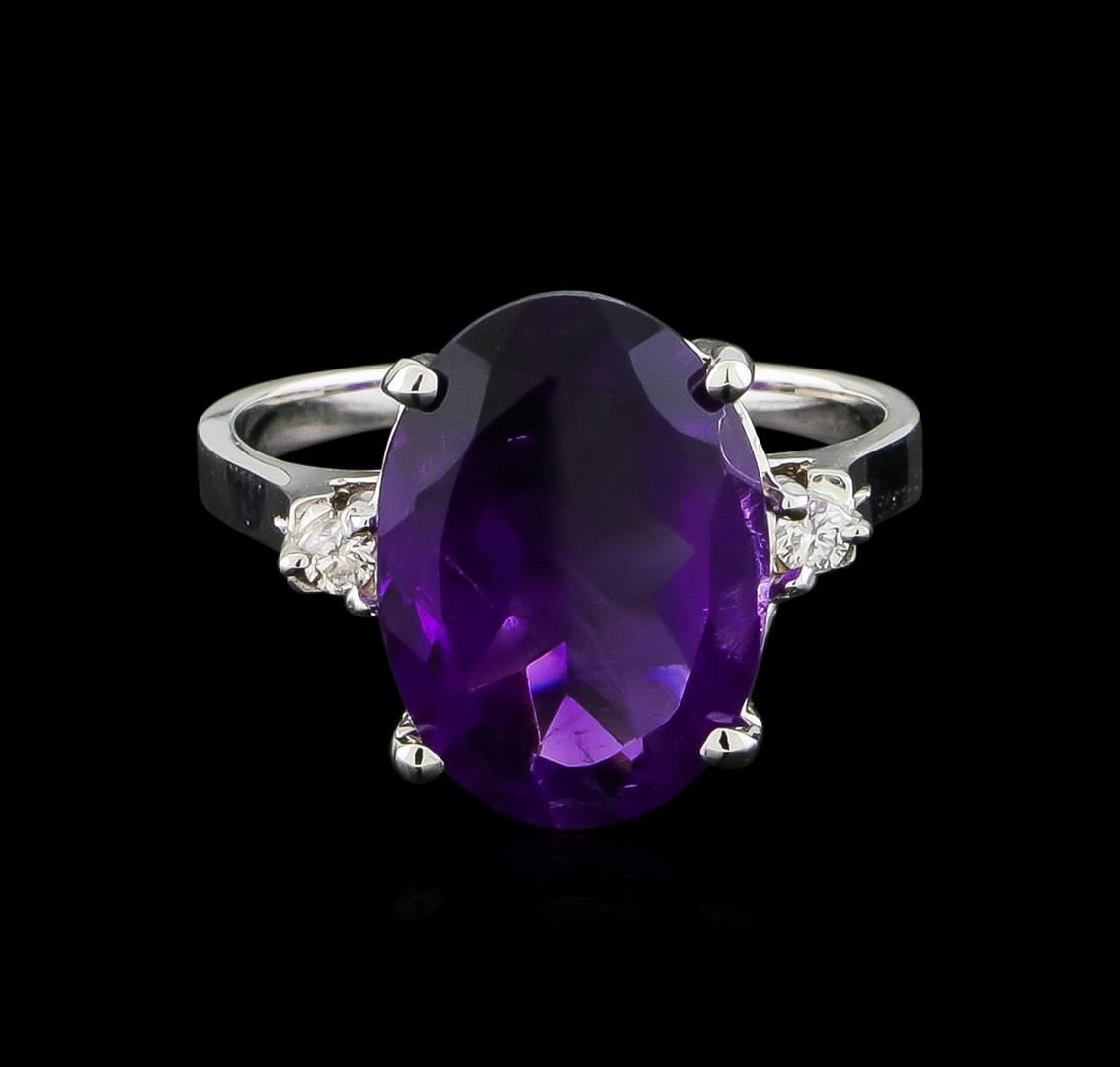 One Ring featuring: 14KT White Gold weighing 2.87 grams containing one Amethyst center stone with a total weight of 4.76ct and Diamonds with a total weight of 0.05ct.