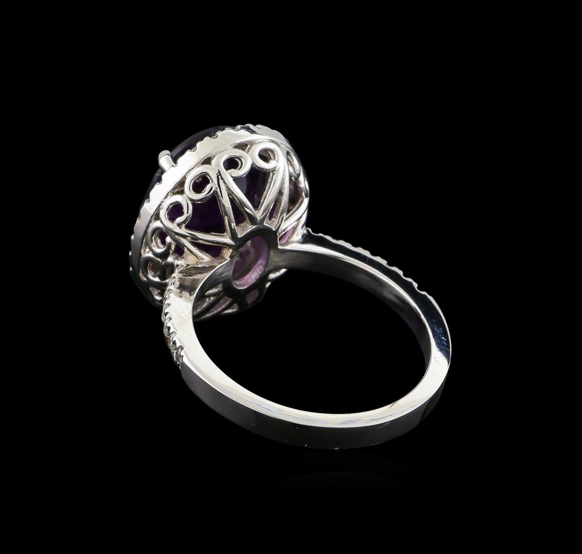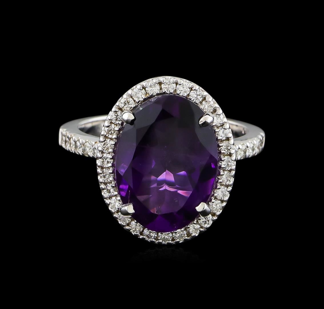One Ring featuring: 14KT White Gold weighing 5 grams containing one Amethyst center stone with a total weight of 4.77ct and Diamonds with a total weight of 0.48ct.