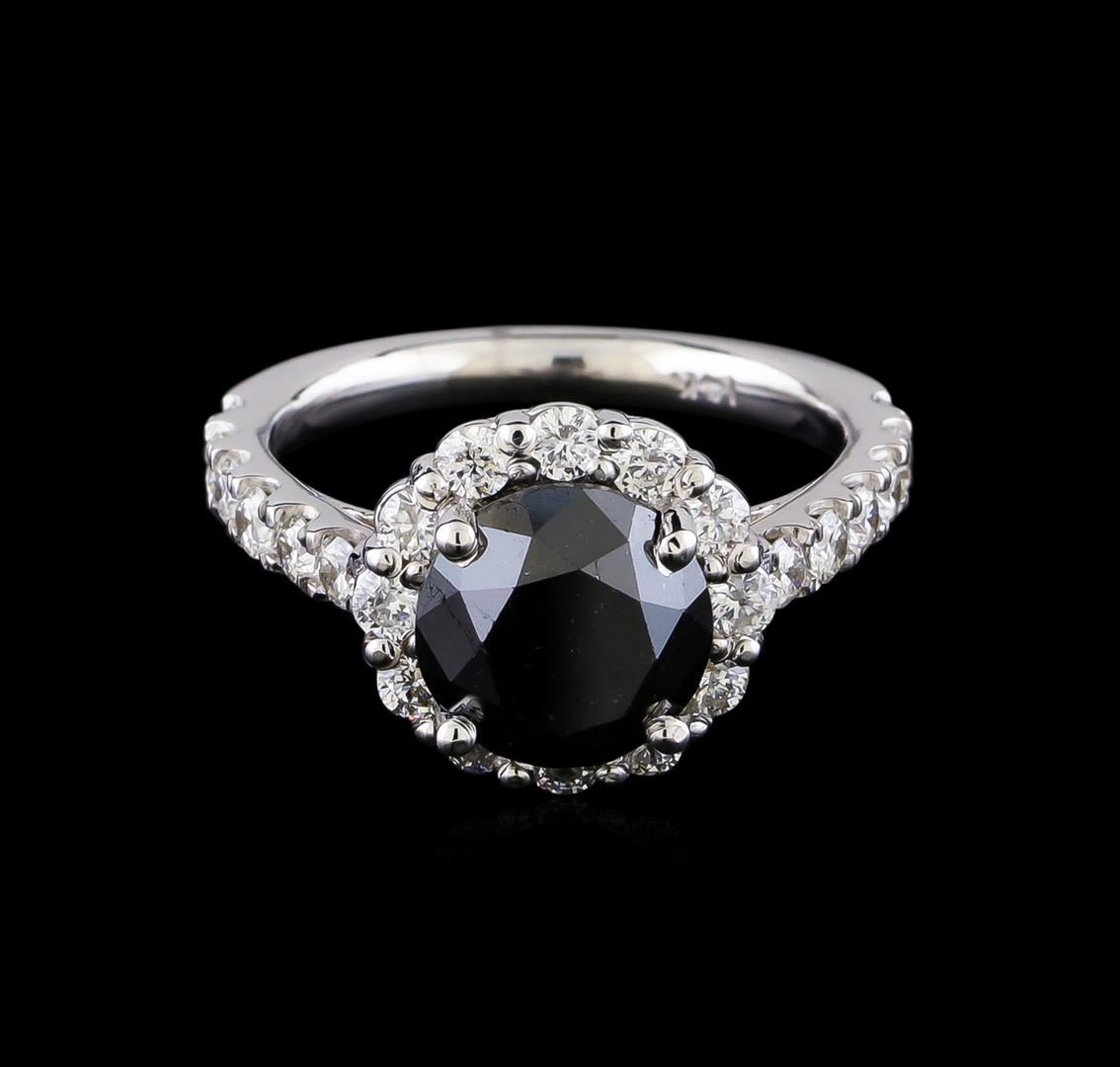 One electronically tested 14KT white gold lady's cast fashion ring with a straight line basket halo with a bright polish finish. The featured lady's ring has a shank measuring 2.36 millimeters in width. Identified with markings of "14K". Condition is new, good workmanship. Containing: One prong set round brilliant cut diamond, measuring 8.74 - 8.72 x 7.04mm (depth est.) , 13.00.%. GTCF approximate weight of 3.70ct. Colored gemstones are presumed to have been subjected to commonly used enhancement processes. Graded in the setting. Cut Good Twenty-Four prong set round brilliant cut diamonds, measuring 2.30 - 2.25 x 1.41mm (depth est.) approximate total weight of 24 Stones = 1.08ct. Graded in the setting. Clarity: SI-1 to I-1. Color: G - I. Cut Good. Total Weight of Diamonds 4.78ct. Total Weight of Ring 5.60gm GAS Appraised at $8,385.00.