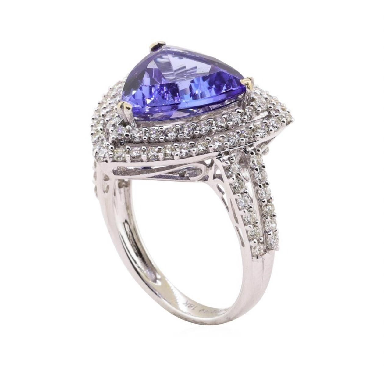 One 4.79ct Tanzanite and Diamond Ring - 18KT White Gold. AIG certified. See Appraisal for more details. AIG Appraised.