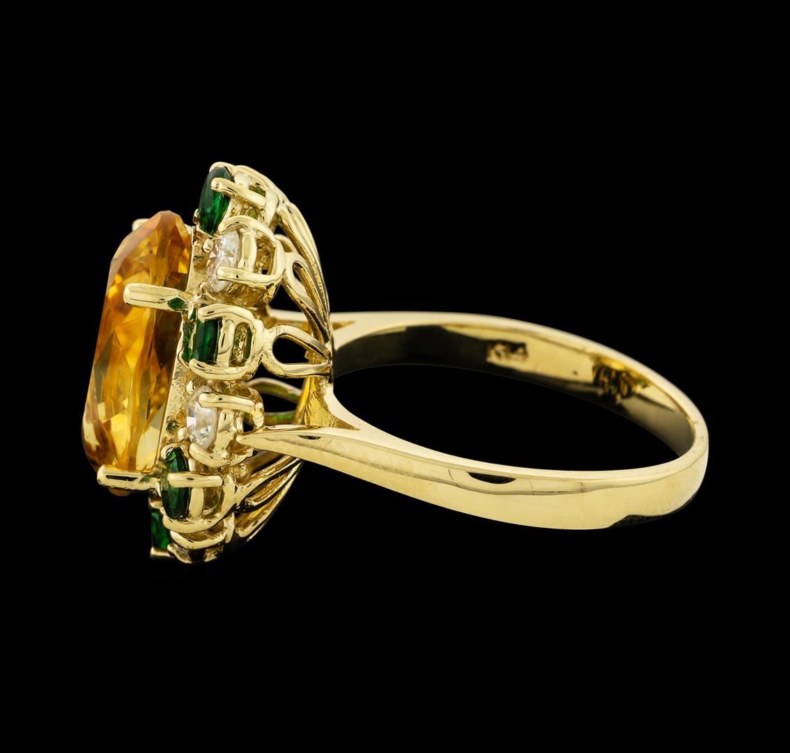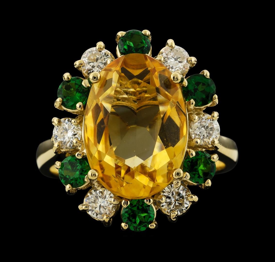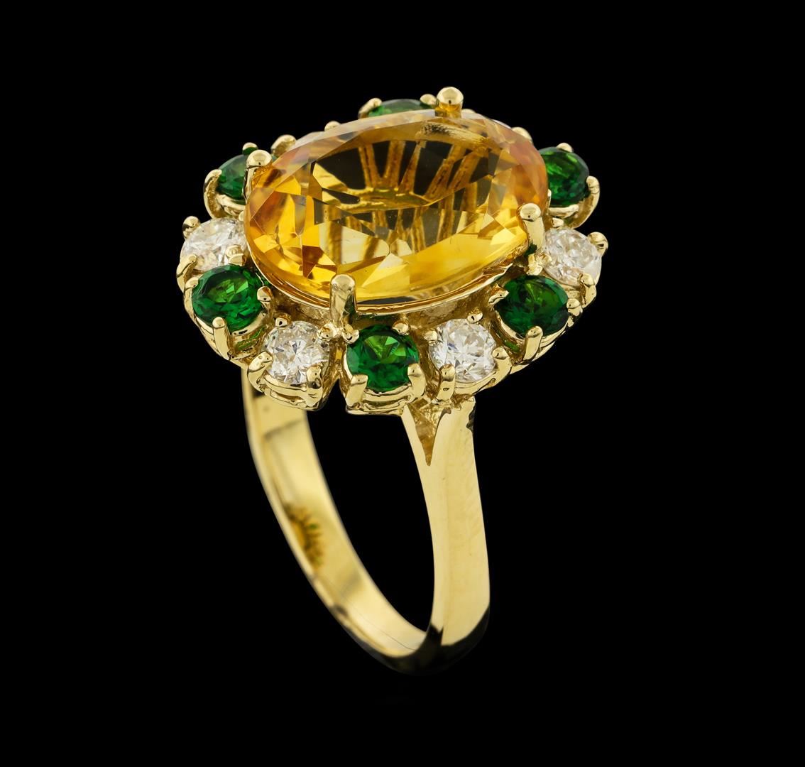 One ring : 14KT yellow gold weighing 5.84gm containing citrine quartz with a total weight of 4.81ct, tsavorite weighing 0.83ctw and diamonds weighing 0.64ctw.