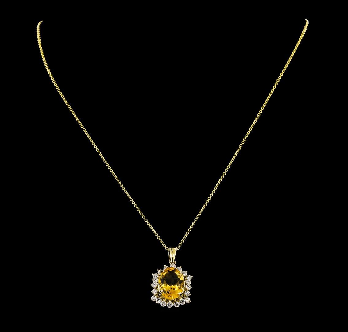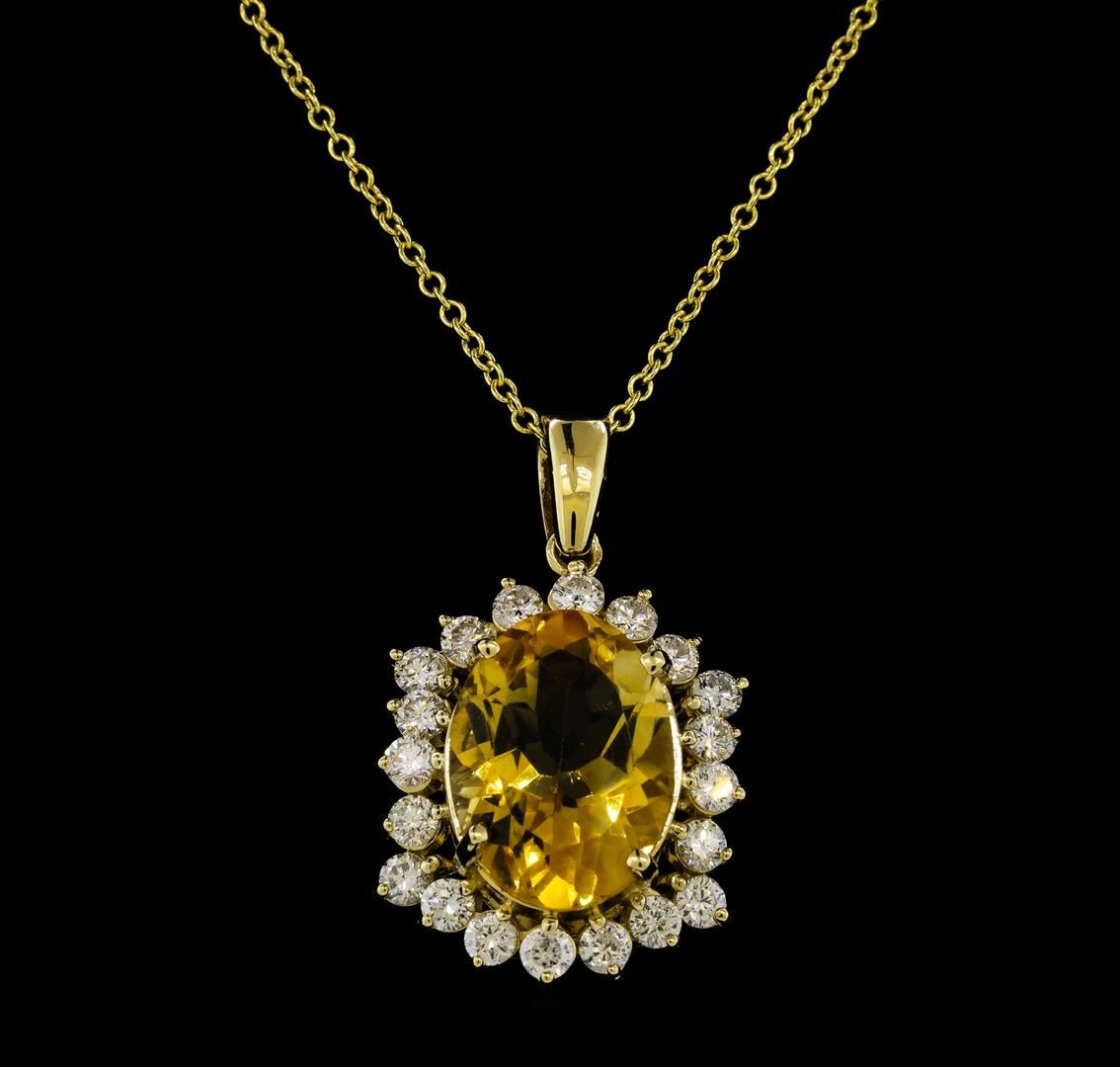 One Citrine Quartz and Diamond Pendant with Chain including: 14KT Yellow Gold weighing a total of 3.37 grams, Citrine Quartz weighing a total of 4.82ct and 20 Diamonds weighing a total of 1.01ctw.