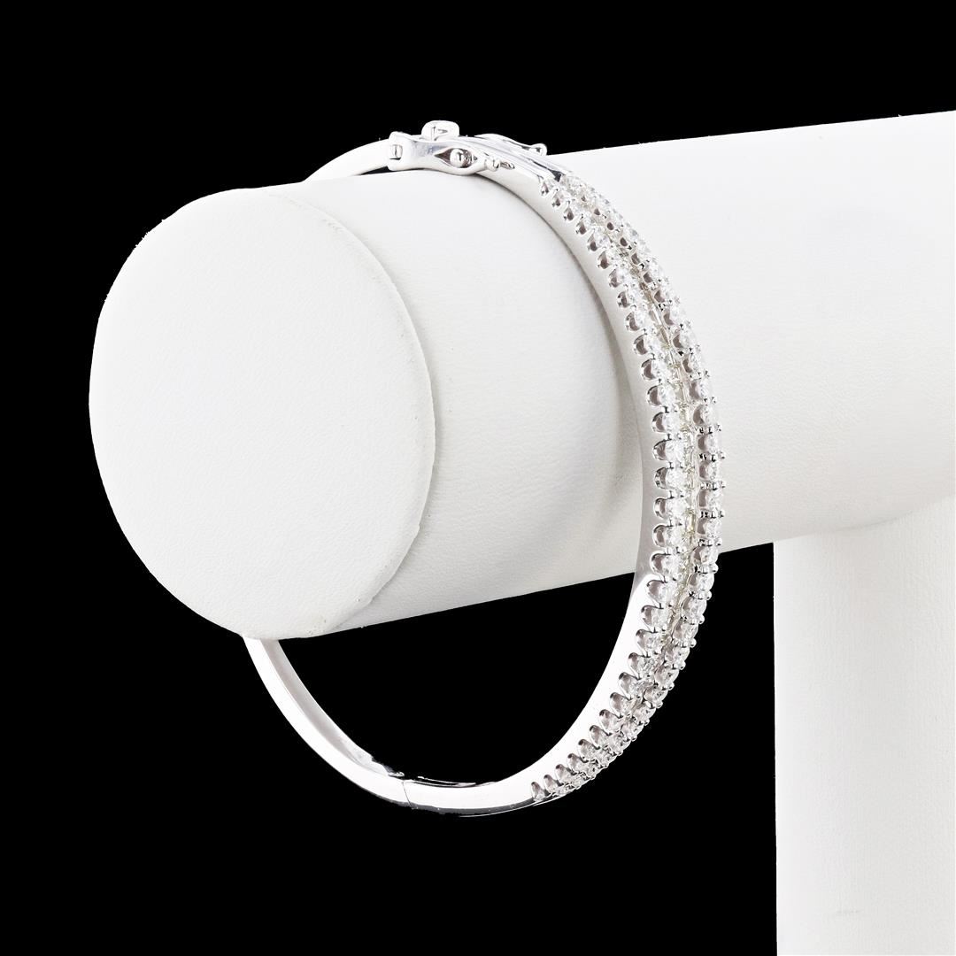 4.82ctw Diamond 14K White Gold Bangle Bracelet. Please see Photos and Description for all available information. This dazzling diamond bangle bracelet is the ultimate in luxury. The bracelet features 102 Baguette/round cut genuine diamonds set into 14K white gold.