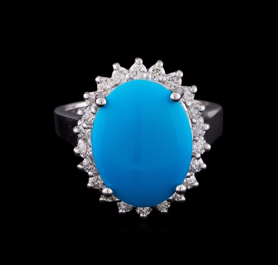 One ring featuring: 14KT white gold weighing 6.47 grams containing one turquoise center stone with a total weight of 4.88ct and diamonds with a total weight of 0.62ct.