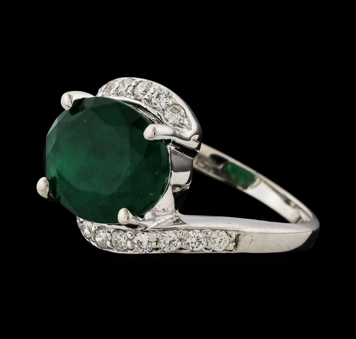 One Ring : 14KT white gold weighing 4.36gm containing one emerald with a total weight of 4.91ct and side diamonds weighing 0.35ctw.