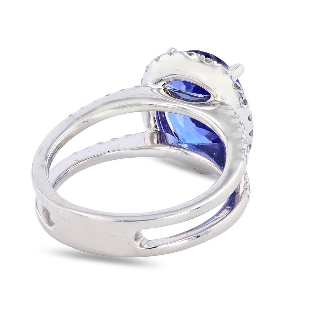 4.92ct Tanzanite and 0.69ctw Diamond Platinum Ring. ONE PLATINUM STAMPED LADY'S CUSTOM MADE DIAMOND & TANZANITE RING. 10.50 GR TW. CONTAINING: 1 â€" MAIN CENTER GEMSTONE(S): IDENTITY : ONE CENTER NATURAL TANZANITE SET IN PRONGS SETTING STYLE. CARAT WEIGHT : 4.92 CT. SHAPE & MEASUREMENT : OVAL CUT. APPROX : 12.6 X 9.5 MM. QUALITY : FINE BLUE/PURPLISH COLOR , FINE CUT & CLARITY. 2 â€" ADJACENT GEMSTONES: IDENTITY : NATURAL DIAMONDS. SHAPE : ROUND BRILLIANT CUT. CARAT WEIGHT : 0.69 CTW. QUALITY : G/H COLOR , VS/SI CLARITY. ALL FINE CUTTING AND PROPORTIONS. ALL PRONGS SETTINGS STYLE. TOTAL GEMSTONES WEIGHT : 5.61 CT TW.