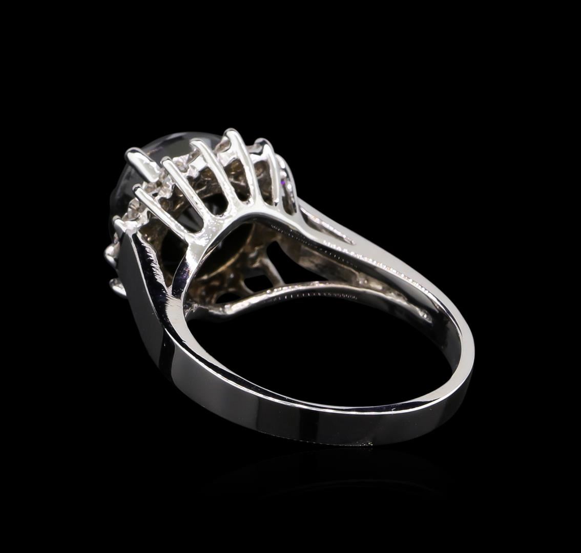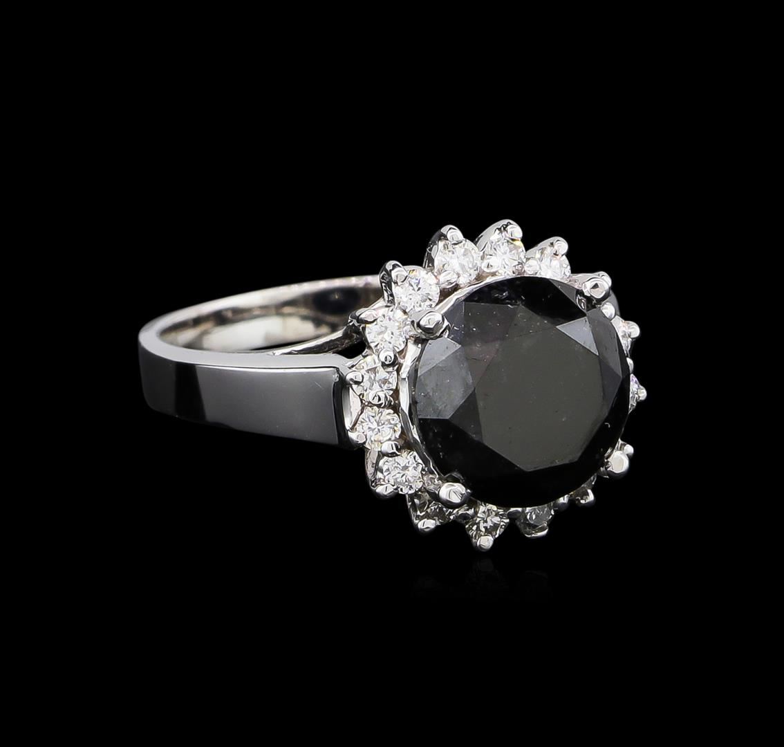 One ring featuring: 14KT white gold weighing 4.90 grams containing one black diamond with a total weight of 4.55ct and side diamonds with a total weight of 0.40ct.