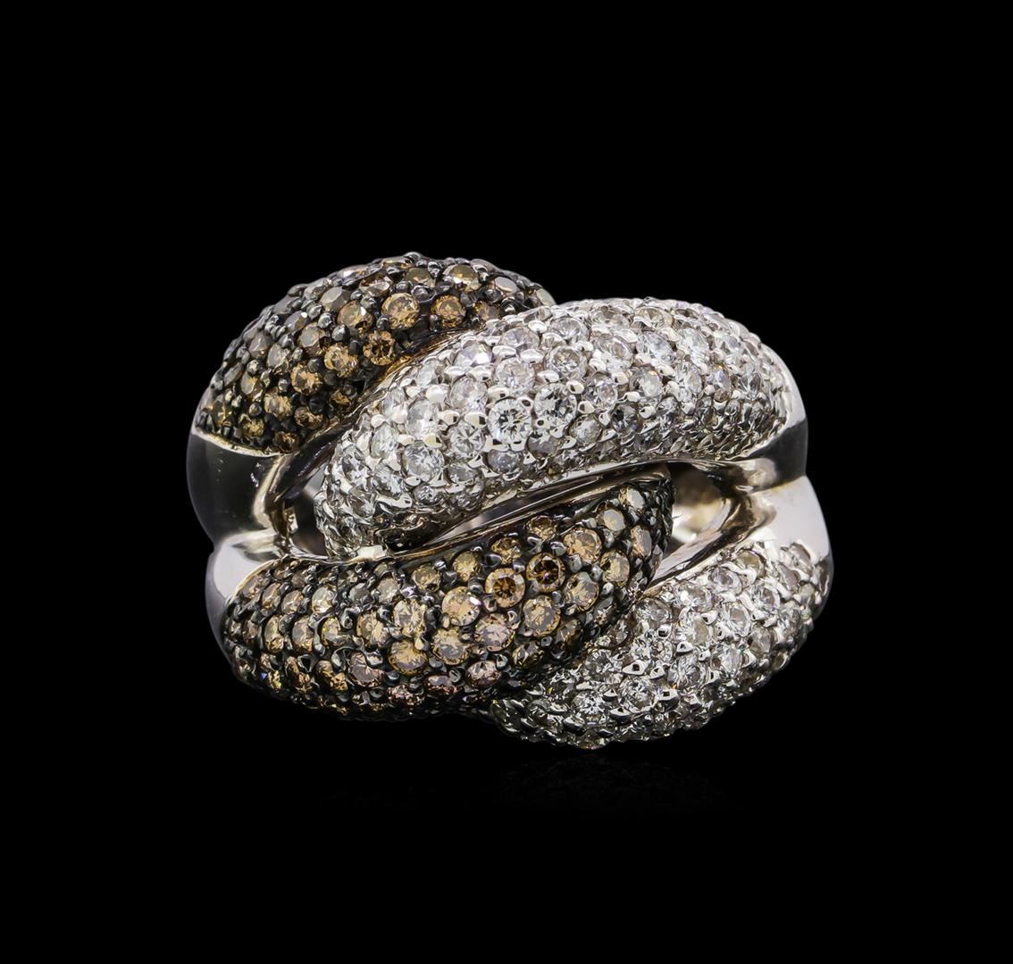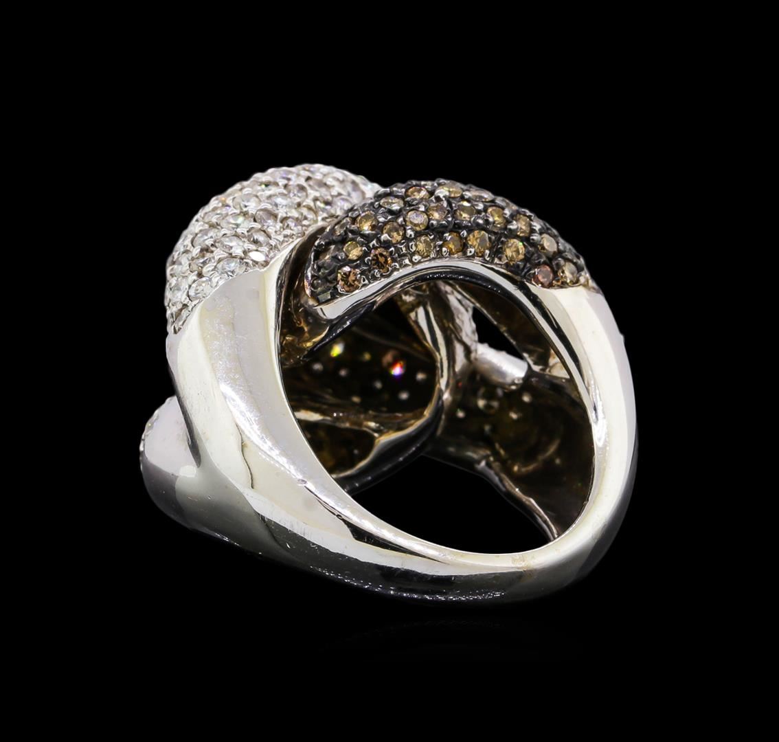 One 14KT white gold ring weighing 18.40 grams containing fancy brown diamonds with SI1-SI2 clarity weighing 2.49ctw and white diamonds with SI1-I1 clarity and H-I color weighing 2.49ctw. GGL Appraised at $18,560.00.