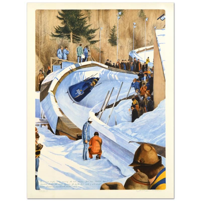 "4-Man Bobsled - 1976" is a limited edition lithograph on paper by William Nelson, numbered and hand signed by the artist! Measures approx. 21" x 28.5" (with border); 18.5" x 26.5" (image).