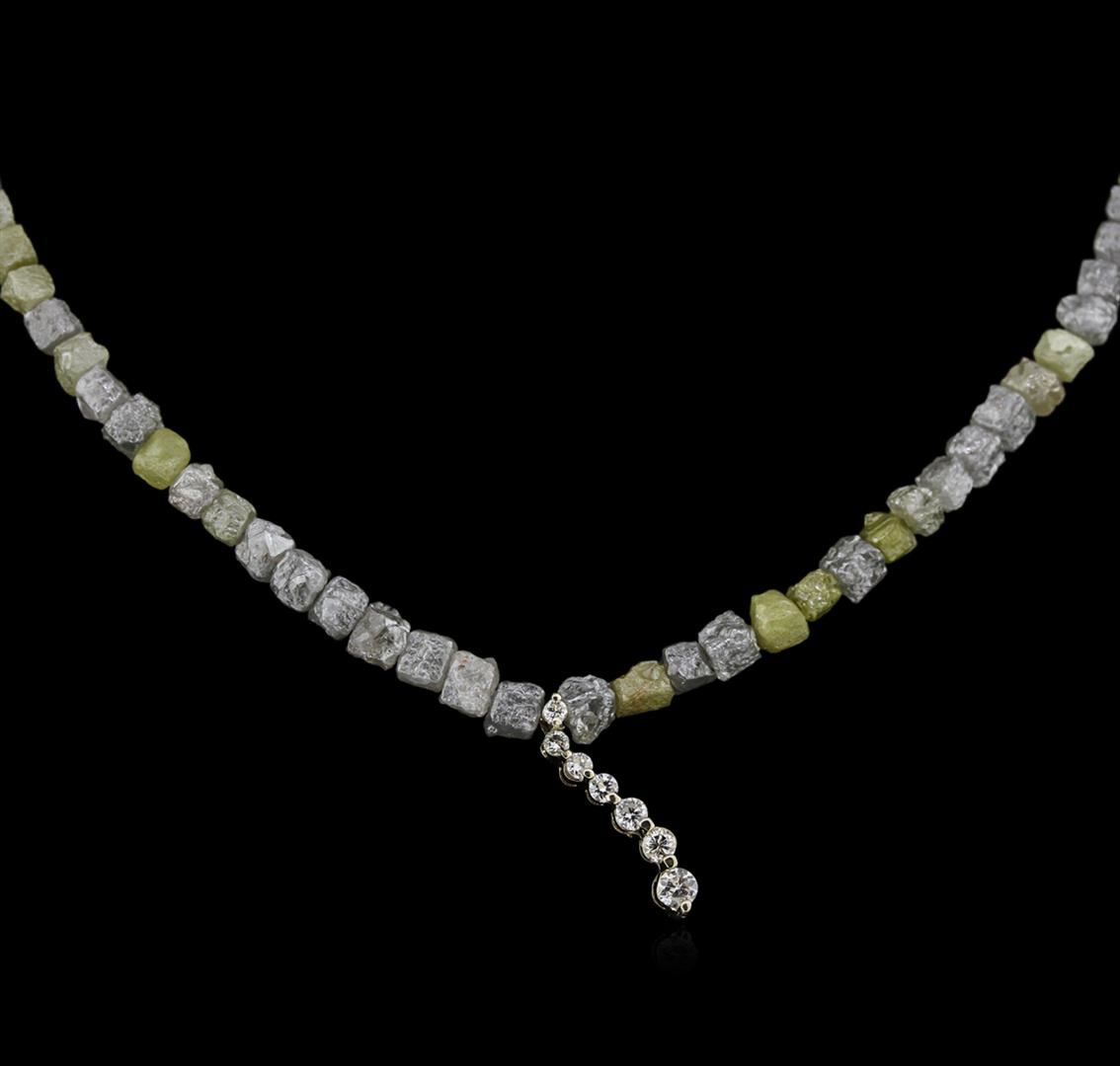 One electronically tested 14KT white gold ladies hand made diamond necklace with a lobster claw clasp. Measurements: 14" in length. Identified with markings of "585". Condition is very good. Containing: Seven prong set round brilliant cut diamonds, measur GGL Appraised at $3,035.00.