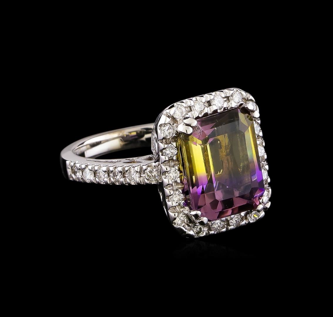 One ring featuring: 14KT White Gold weighing 7.7 grams containing one Ametrine center stone with a total weight of 5ct and diamonds with a total weight of 0.58ct.