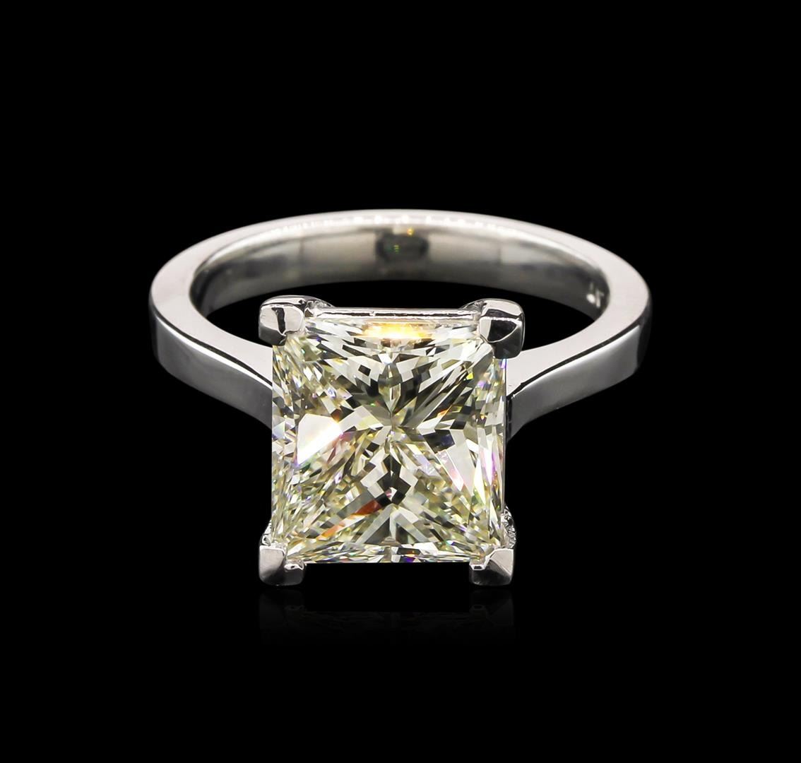 One electronically tested platinum lady's cast solitaire engagement ring with a cathedral shank with a bright polish finish. Condition is new. The featured ring has a 2.86mm shank. Identified with markings of "PLAT". Containing: One prong set princess cut diamond, measuring 10.00 x 9.01 x 6.66mm (depth est.) approximate weight of 5.00ct with a faint fluorescence. Graded in the setting. EGL USA Laboratory Report #US311161502D. Clarity: VS-2. Color: K. Cut: Good. Depth: 73.9%. Pavil. Depth%: 690.3%. Total Weight of Diamonds: 5.00ct. Total Weight of Ring: 9.10 gm. GAS Appraised at $155,925.00.