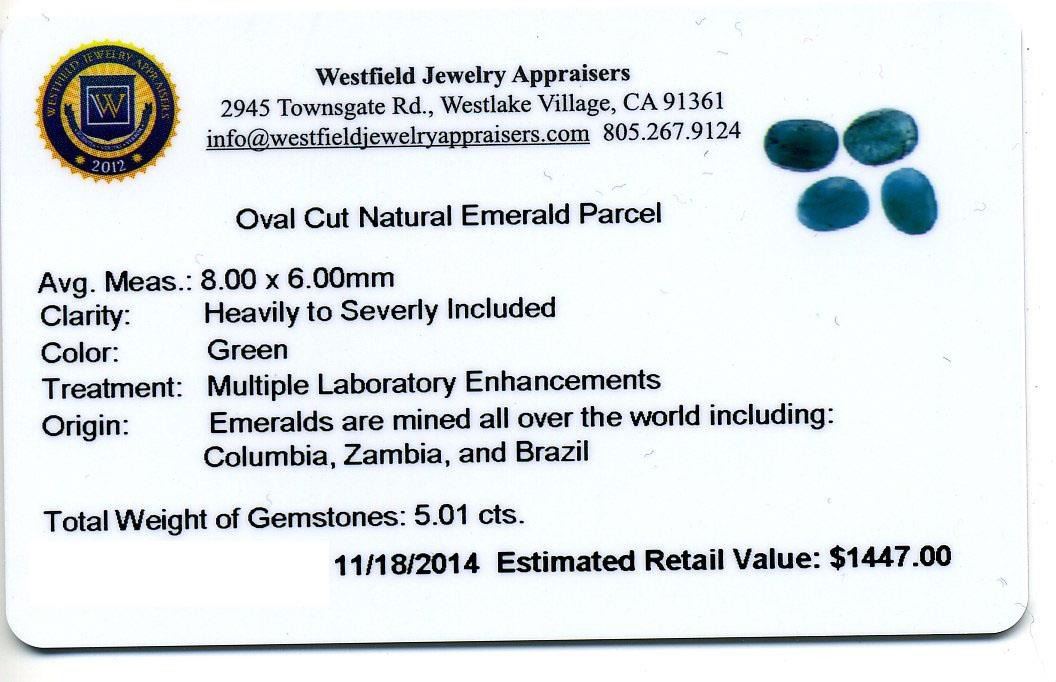 5.01cts. Oval Cut Natural Emerald Parcel Westfield Appraised.