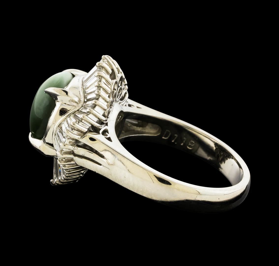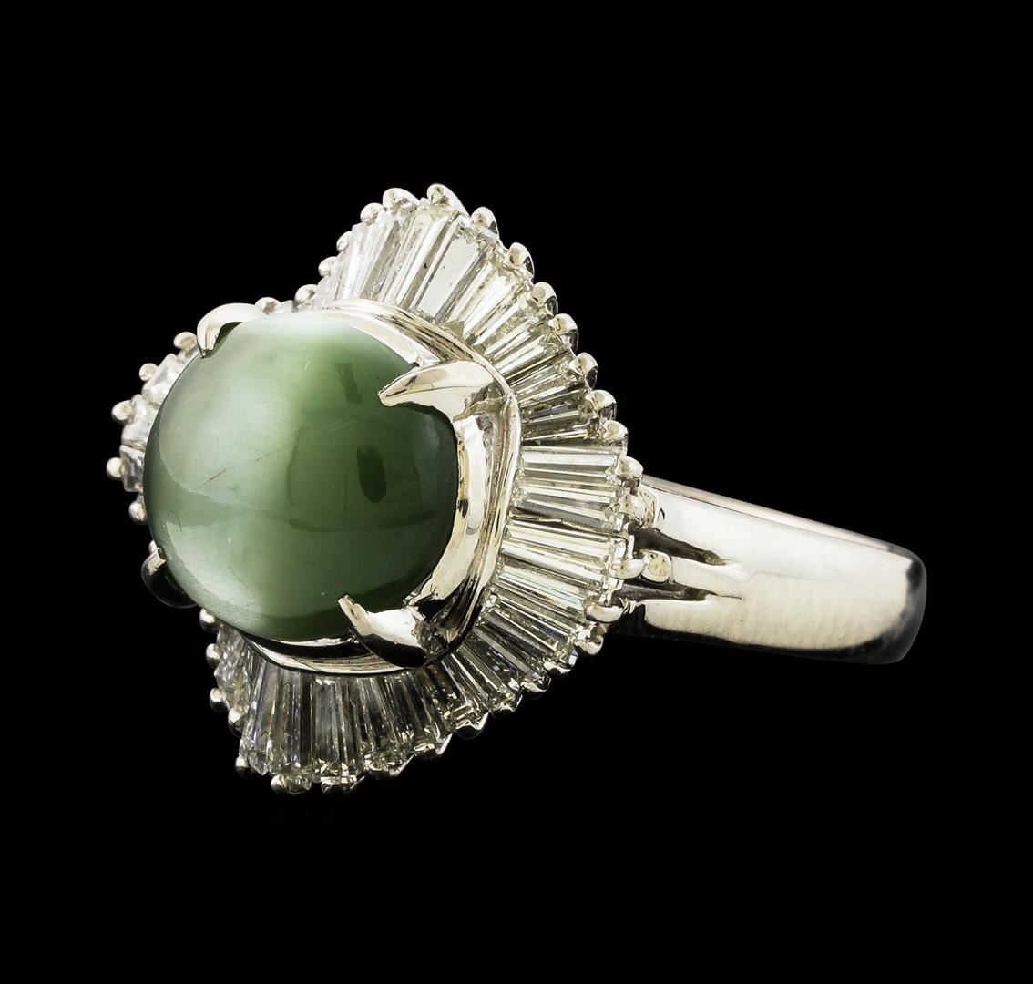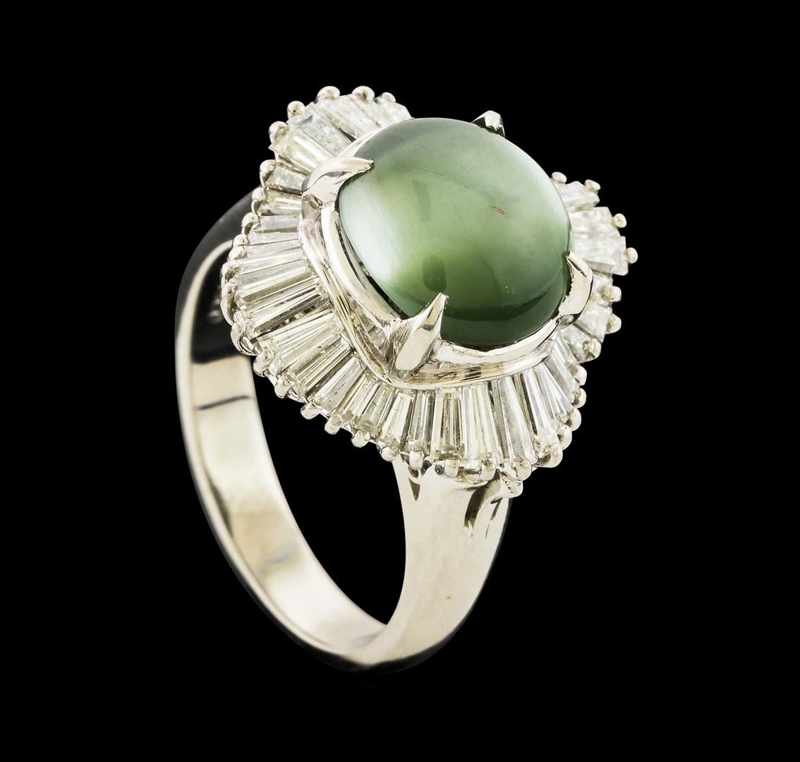 One ring featuring: Platinum containing Tiger Eye with a total weight of 5.15ct and Diamonds with a total weight of 1.18ct. Total Weight of Ring: 10.7 grams.