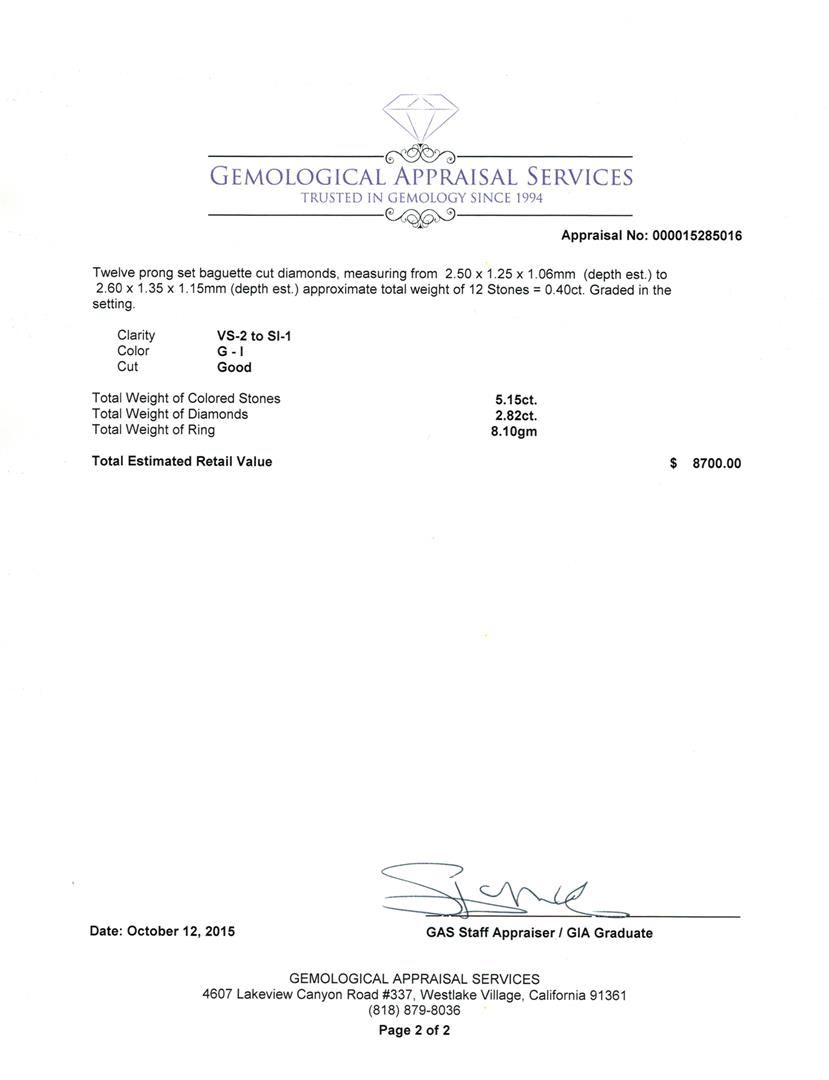 Not all Jewelry, watches or loose stones are appraised and the appraisals are provided for bidders only in certain instances at the discretion of SAA. Our appraisals are conducted by independent third-party appraisal firms. Such firms may be certified GIA Gemologists or have education in the industry or alternative certifications. Appraisals should be used for verification of gemstone and/or metal weight, size, and grade only, not actual value for resale or insurance purposes. Appraisal value should be not considered for actual value, as price varies greatly from retail locations and other merchants in different geographic locations. All Items auctioned by SAA should not be purchased with a view or expectation toward resale for appraisal price given, or to make a profit. The ultimate value for which an item can be resold may vary drastically from the appraisals listed by SAA.