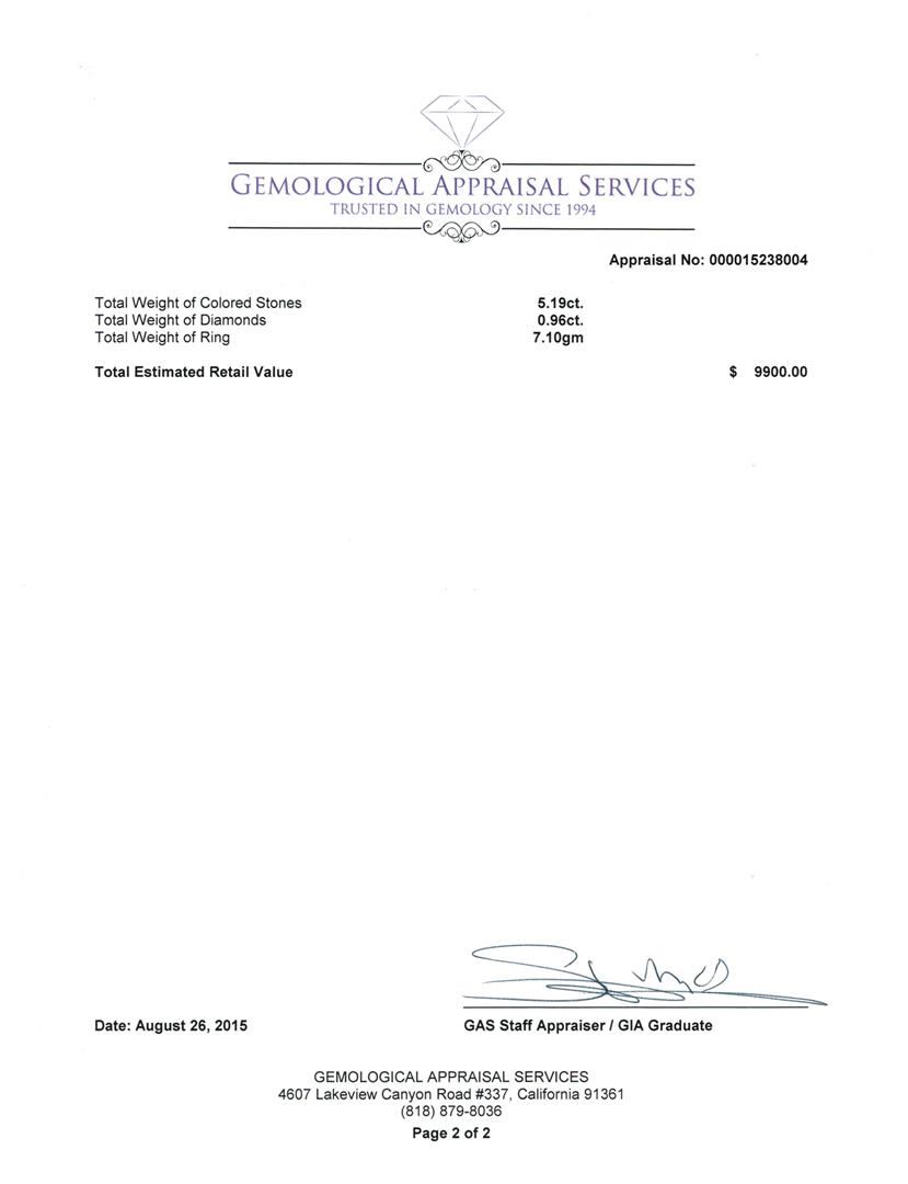 Not all Jewelry, watches or loose stones are appraised and the appraisals are provided for bidders only in certain instances at the discretion of SAA. Our appraisals are conducted by independent third-party appraisal firms. Such firms may be certified GIA Gemologists or have education in the industry or alternative certifications. Appraisals should be used for verification of gemstone and/or metal weight, size, and grade only, not actual value for resale or insurance purposes. Appraisal value should be not considered for actual value, as price varies greatly from retail locations and other merchants in different geographic locations. All Items auctioned by SAA should not be purchased with a view or expectation toward resale for appraisal price given, or to make a profit. The ultimate value for which an item can be resold may vary drastically from the appraisals listed by SAA.