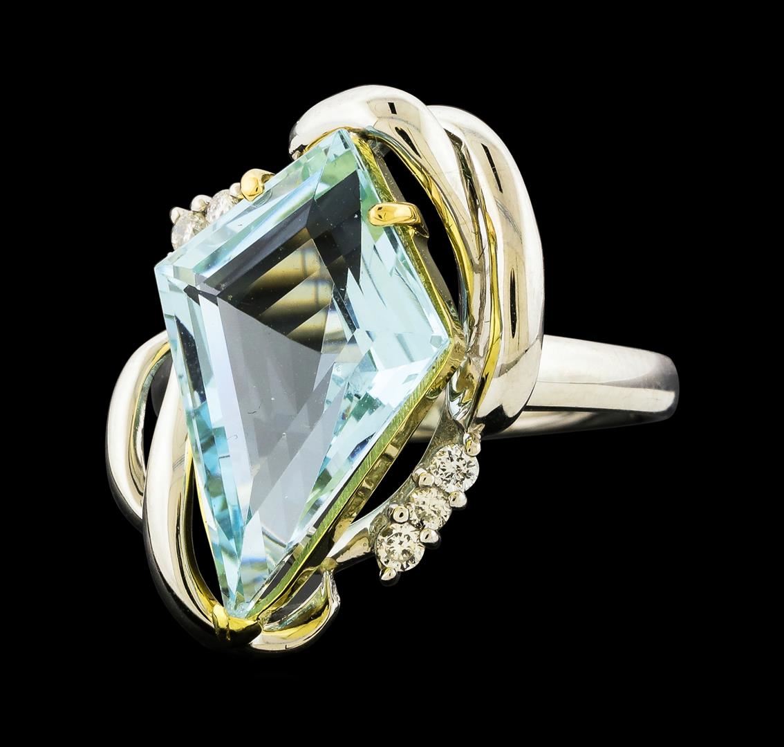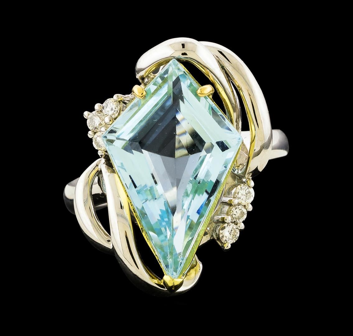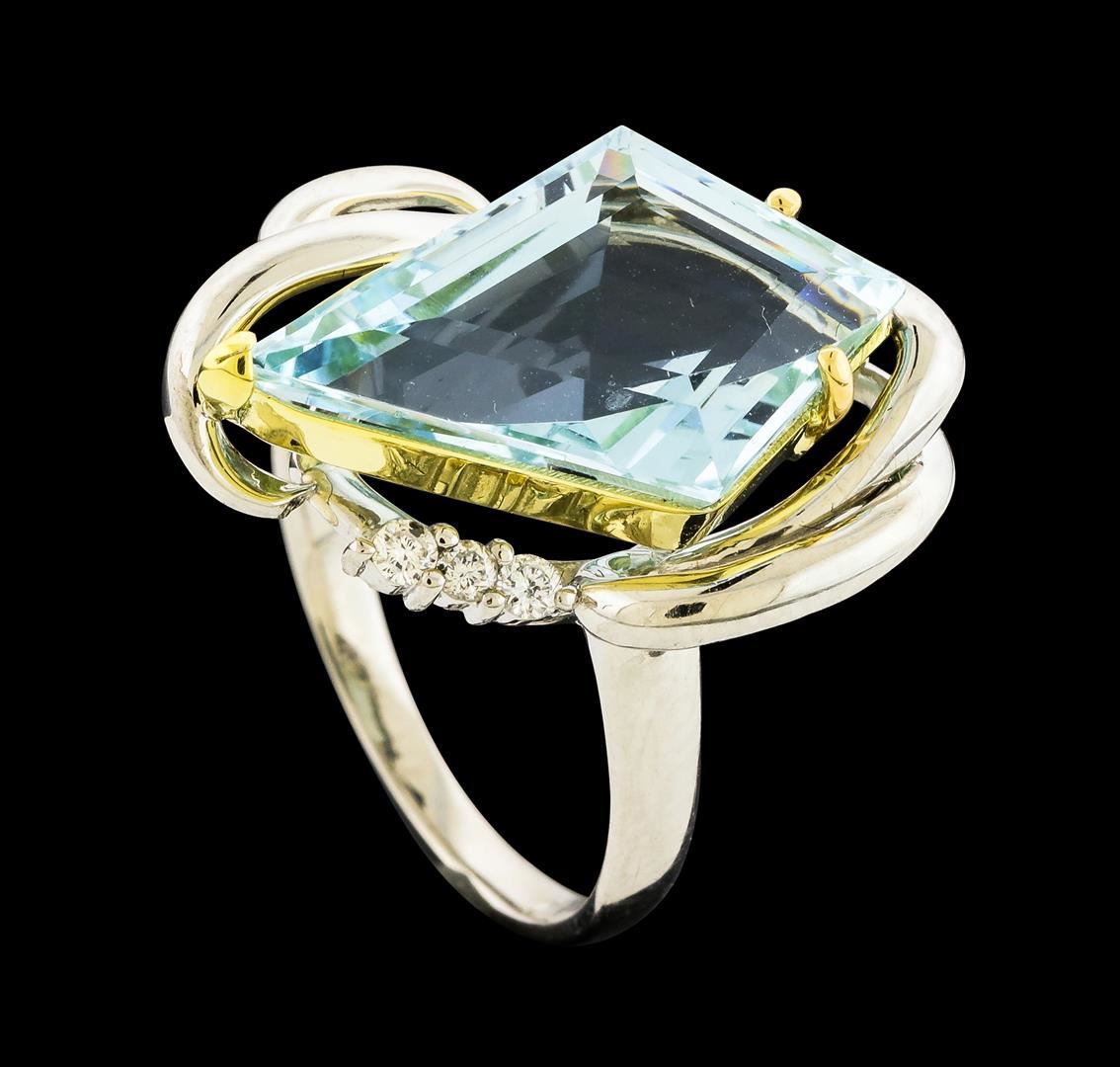 One ring featuring: Platinum and Yellow Gold containing Aquamarine with a total weight of 5.20ct and Diamonds with a total weight of 0.12ct. Total Weight of Ring: 7.5 grams.
