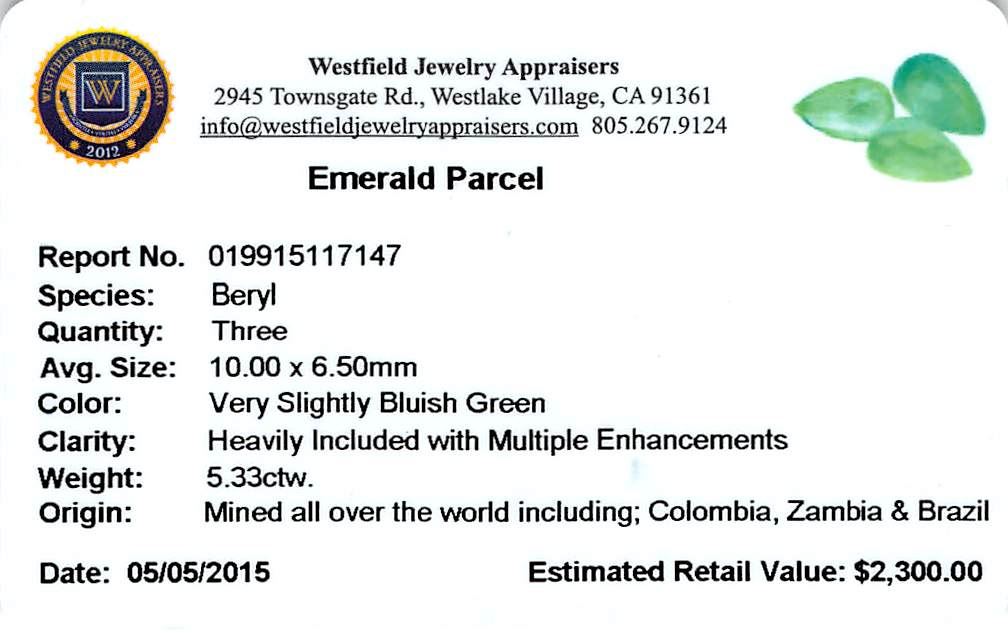One 5.33 ctw Pear Mixed Emerald Parcel.
