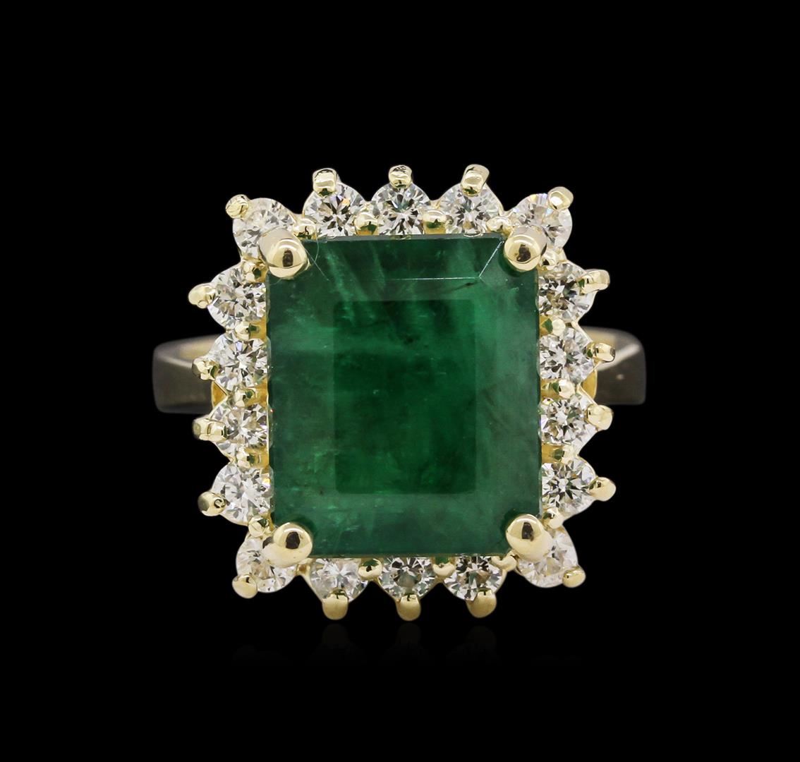 One ring featuring: 14KT yellow gold weighing 5.60 grams containing one emerald with a total weight of 5.36ct and diamonds with a total weight of 0.70ct.