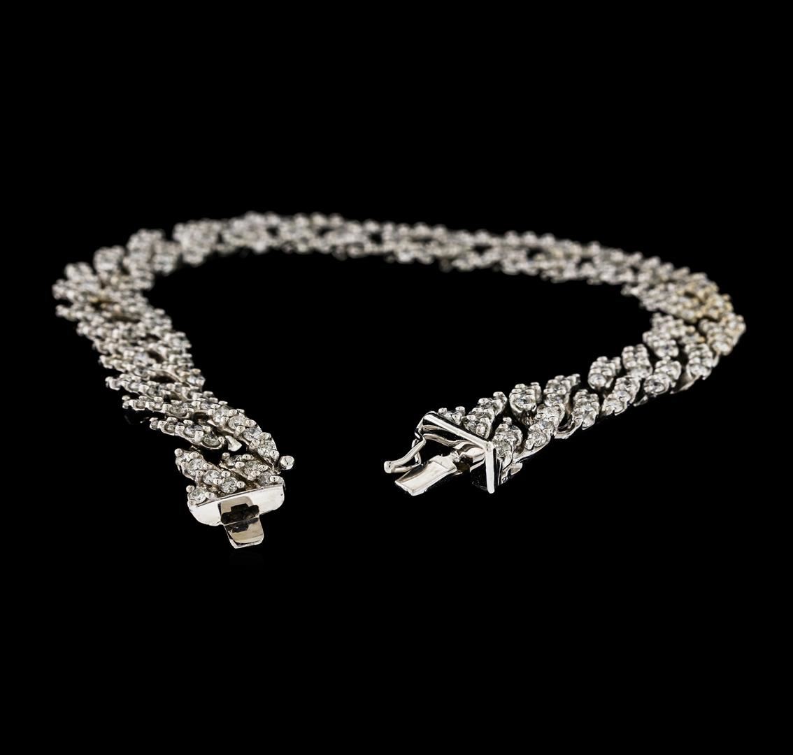One electronically tested 14KT white gold lady's combination cast & assembled fashion bracelet with a tongue clasp with foldover safety with a bright polish finish. The featured lady's bracelet is a diamond set curb link chain and measures approximately 9.5 millimeters wide and 7 inches long. Identified with markings of 'K14'. Condition is new, good workmanship. Containing: Two Hundred Forty-Eight prong set round brilliant cut diamonds, measuring 1.85 - 1.75 x 1.10mm (depth est.) approximate total weight of 248 Stones = 5.40ct. Graded in the setting. Clarity SI-1 to SI-3. Color: G - I Cut Good. Total Weight of Diamonds 5.40ct.. Total Weight of Bracelet 24.50gm. GAS Appraised at $16,885.00.